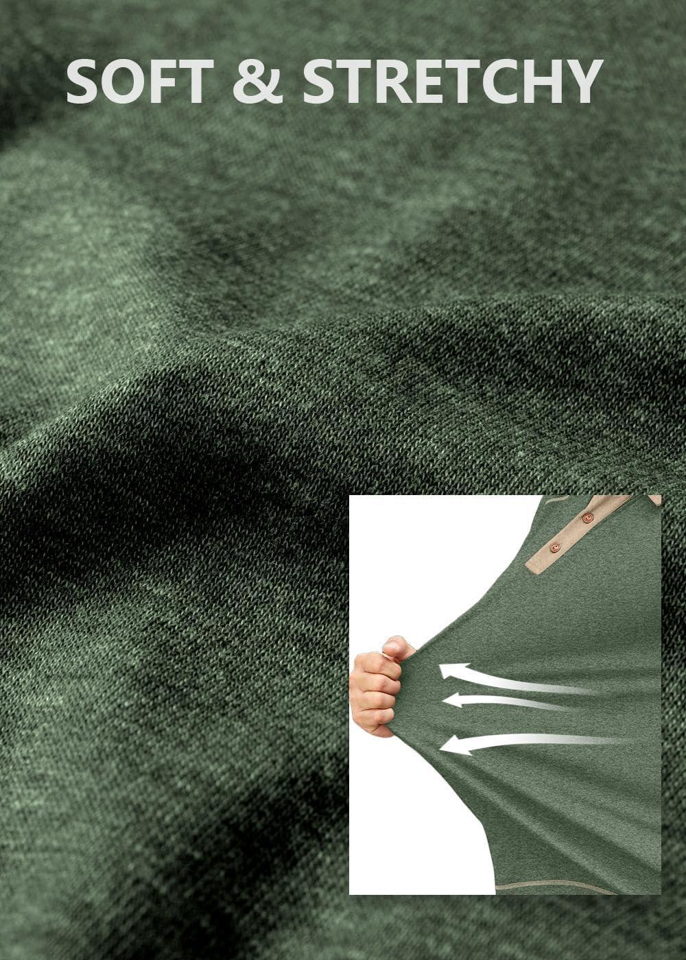 COOFANDY Mens Long Sleeve Polo Shirts Casual Button Collared Shirts Raglan Golf T Shirt(Green)