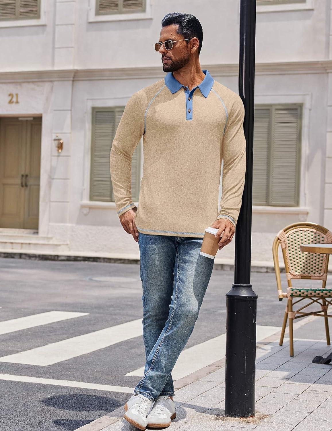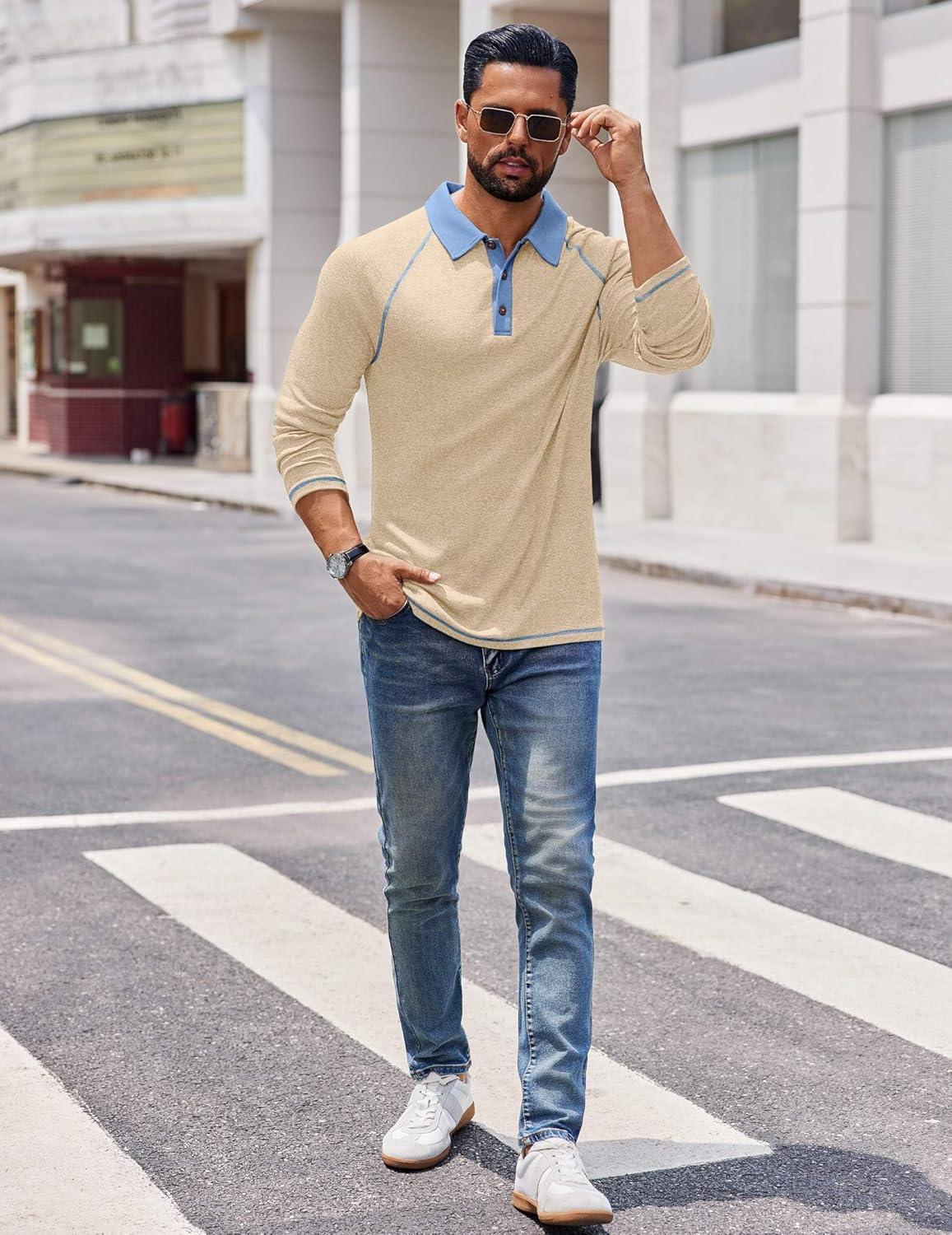 Save up to 40% on COOFANDY Mens Long Sleeve Polo Shirts Casual Button Collared Shirts Raglan Golf T Shirt(Light Khaki) styles during our end-of-season sale.