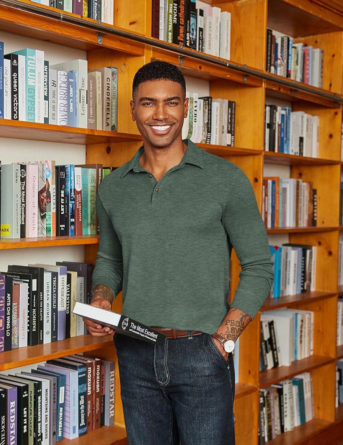 Get your hands on our newest COOFANDY Mens Long Sleeve Polo Shirts Classic Casual Button Polo Tee Lightweight Collared Golf Shirt(Dark Army Green) and enjoy a limited-time discount offer.