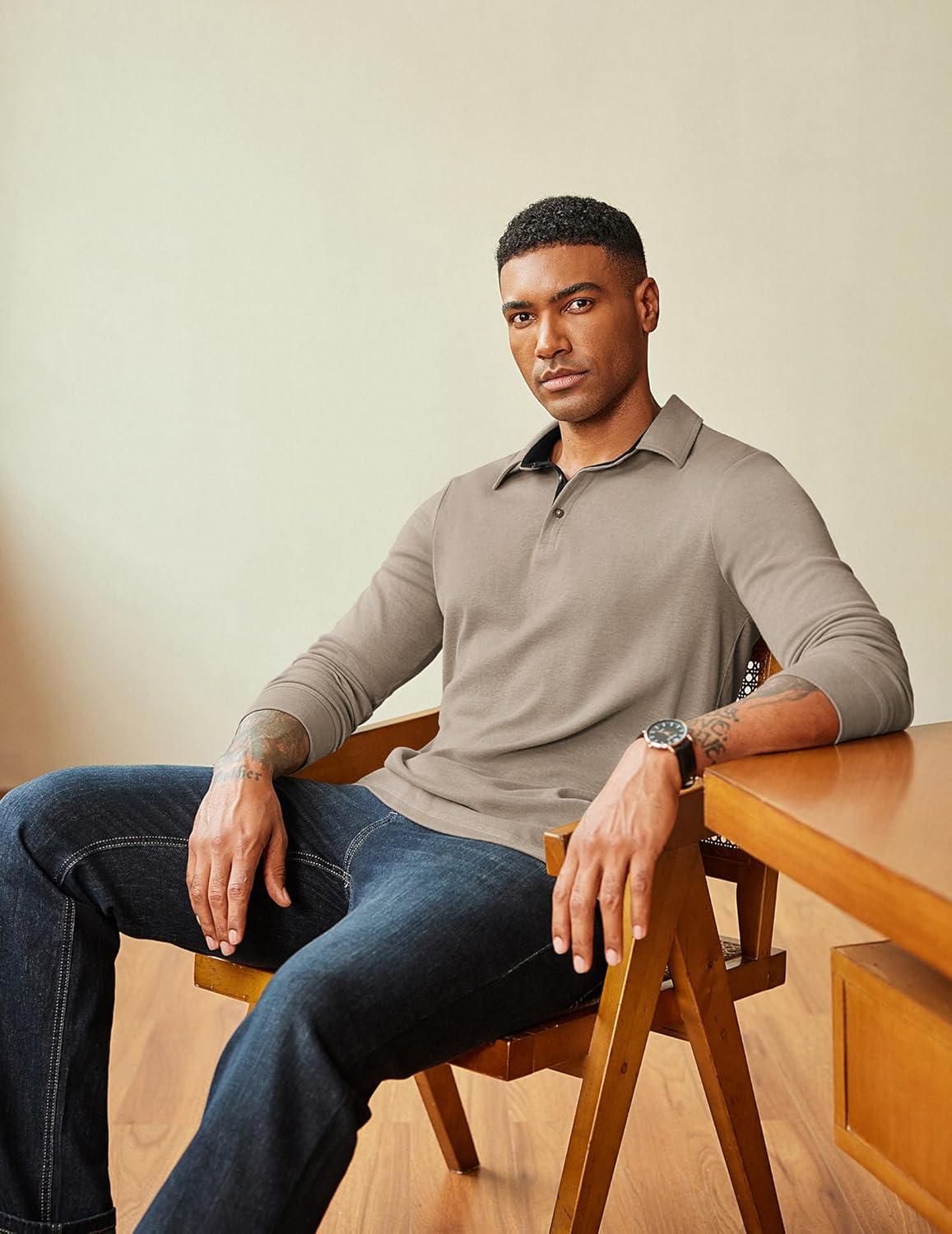 COOFANDY Mens Long Sleeve Polo Shirts Classic Casual Button Polo Tee Lightweight Collared Golf Shirt(Dark Grey)