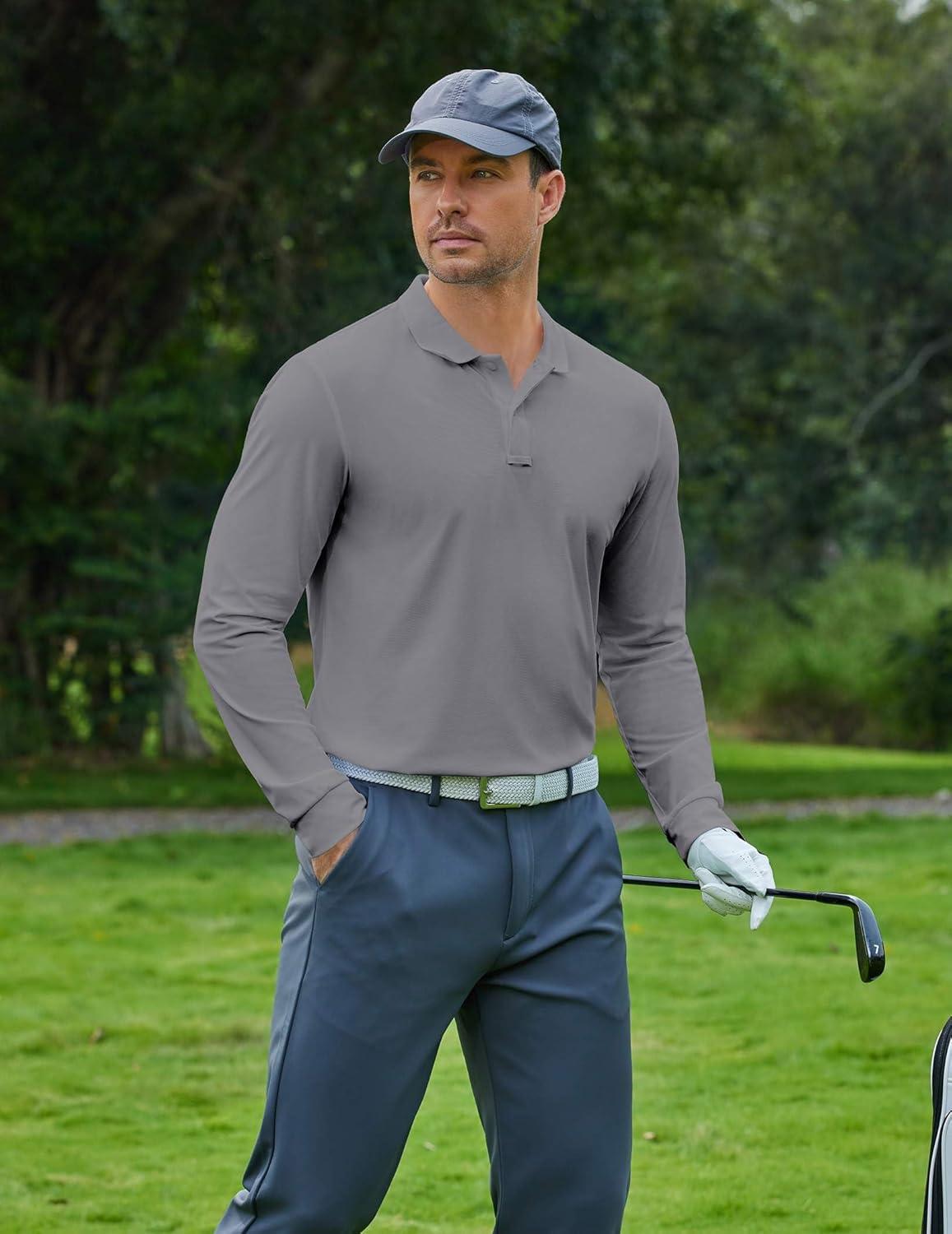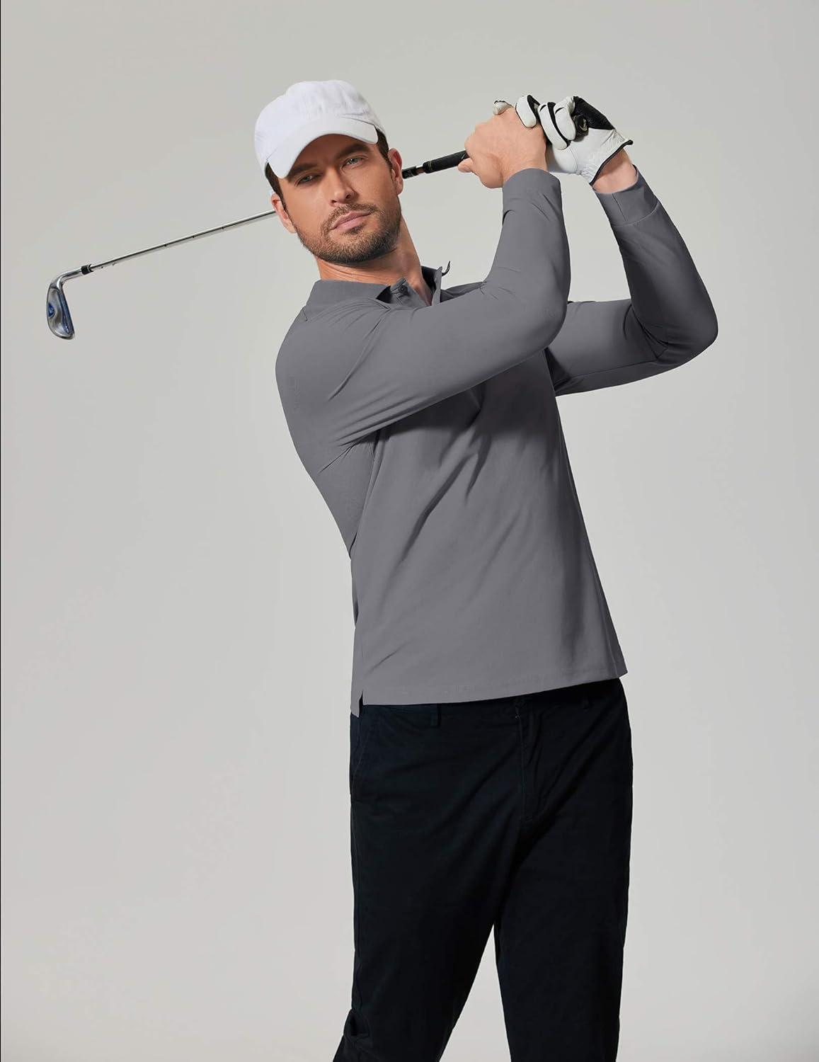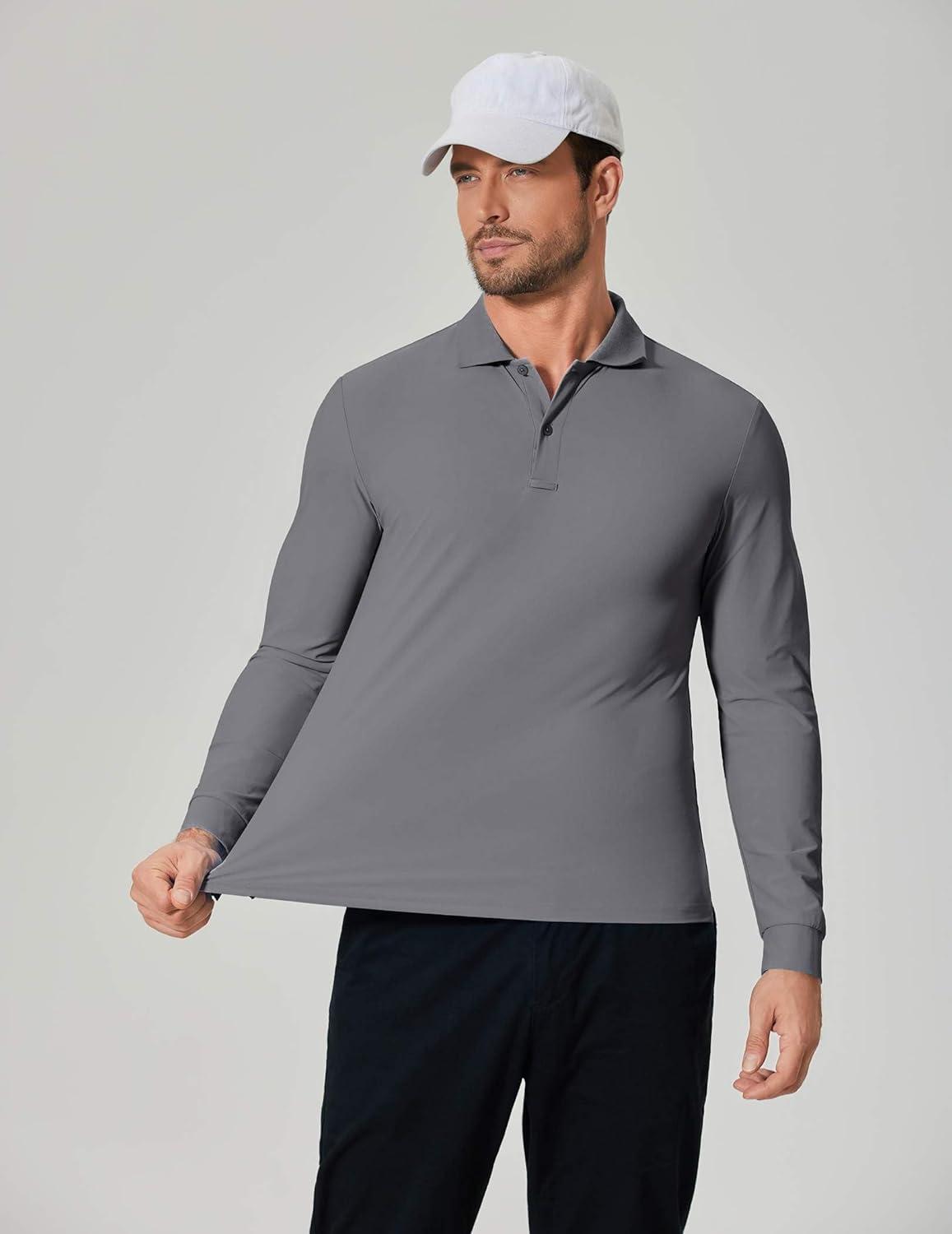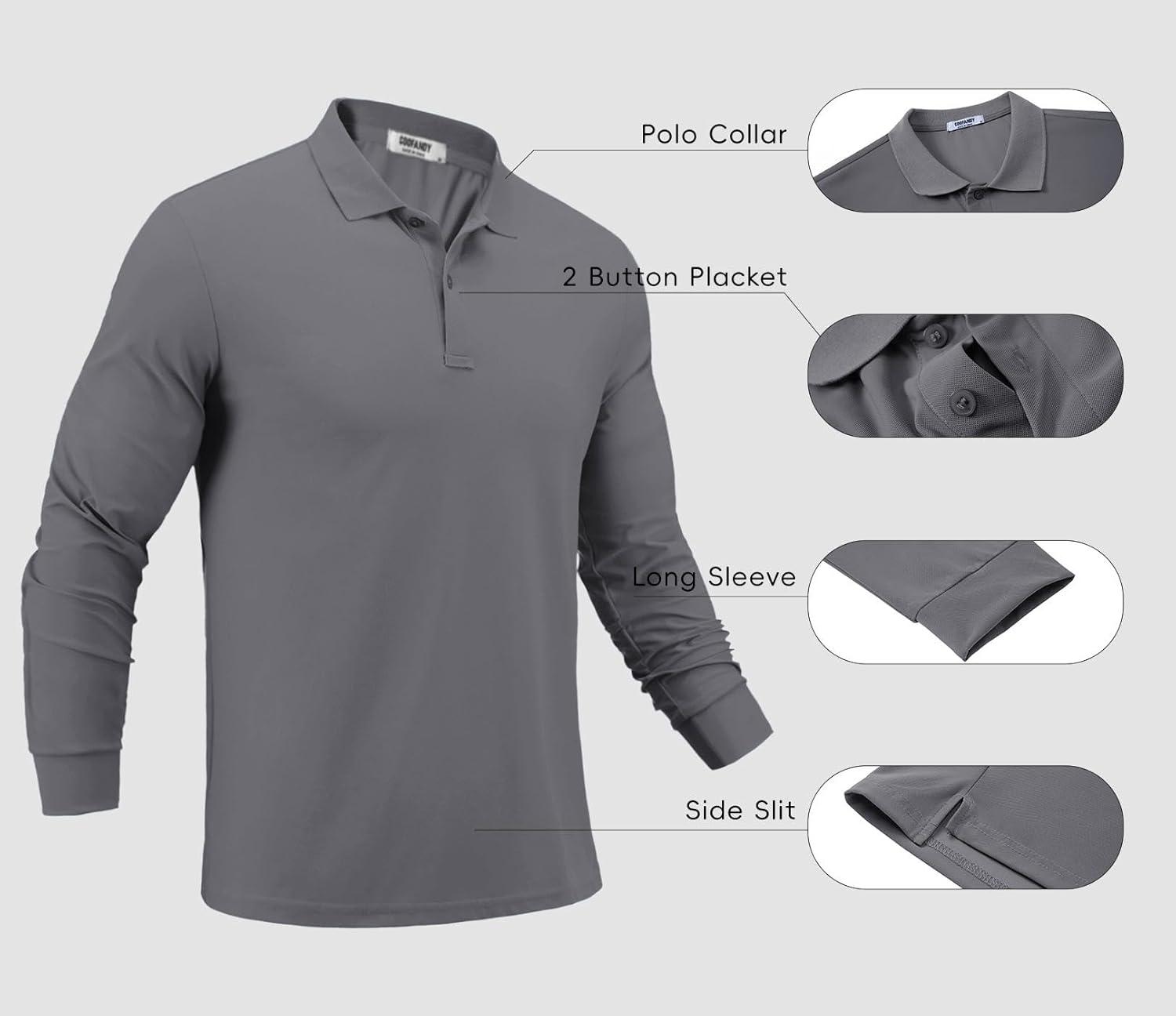 COOFANDY Men’s Long Sleeve Polo Shirts Moisture Wicking Golf Shirts Lightweight Athletic Collared Shirt(Dark Grey)