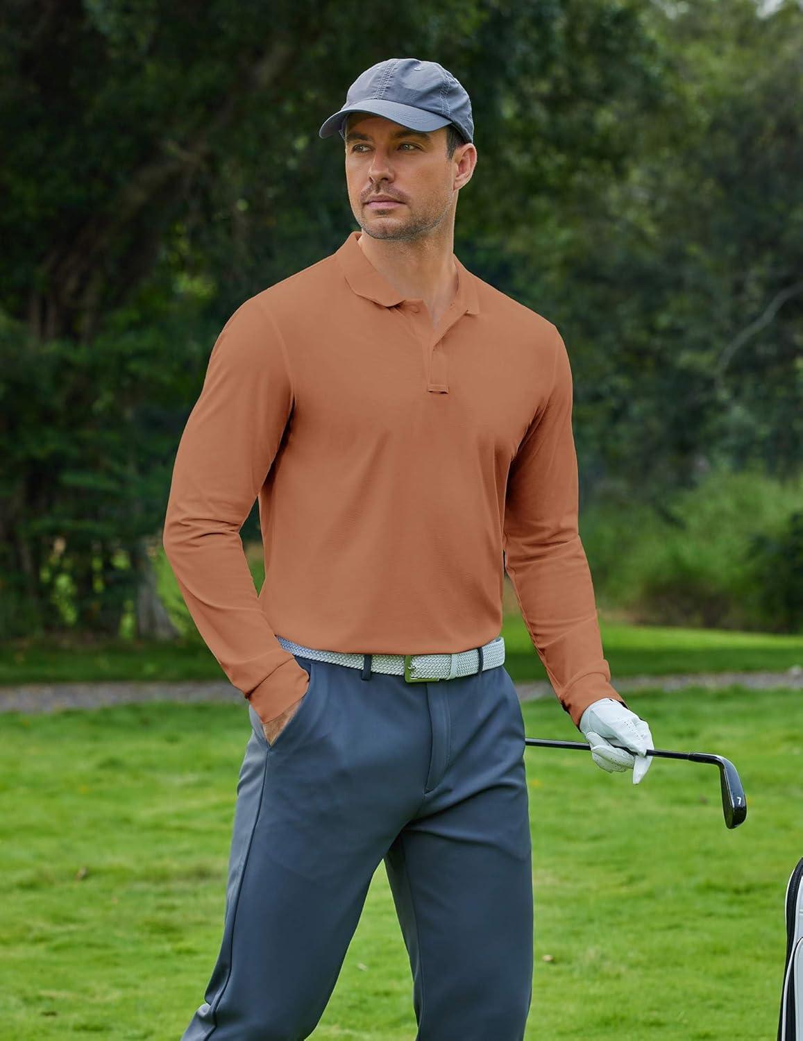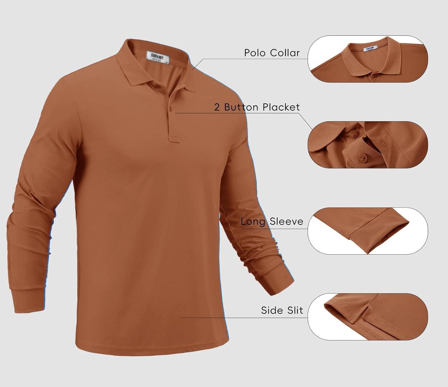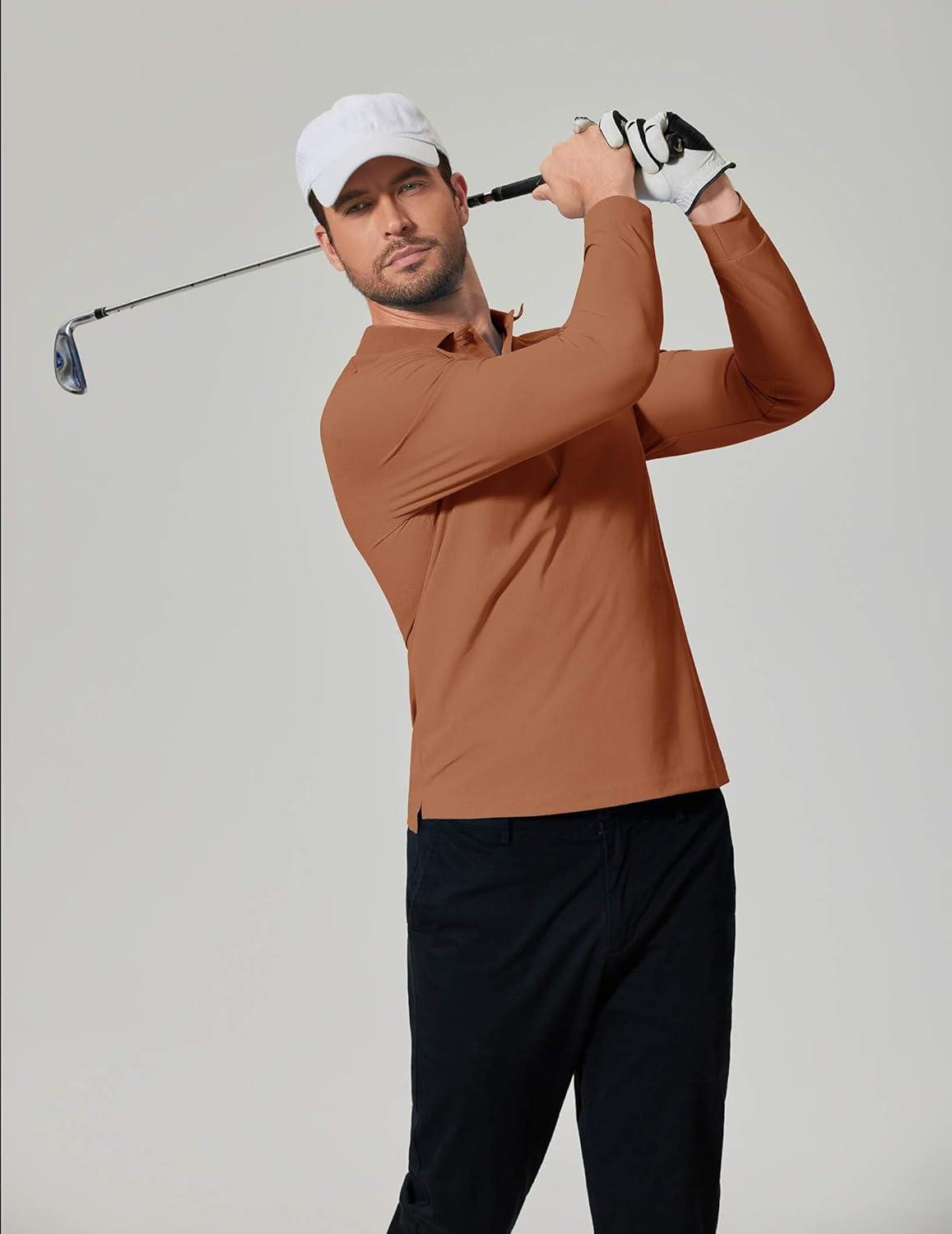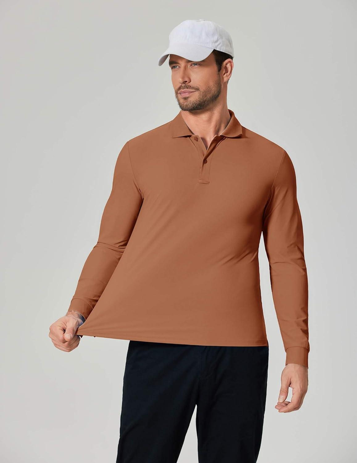 COOFANDY Men’s Long Sleeve Polo Shirts Moisture Wicking Golf Shirts Lightweight Athletic Collared Shirt(Light Brown)