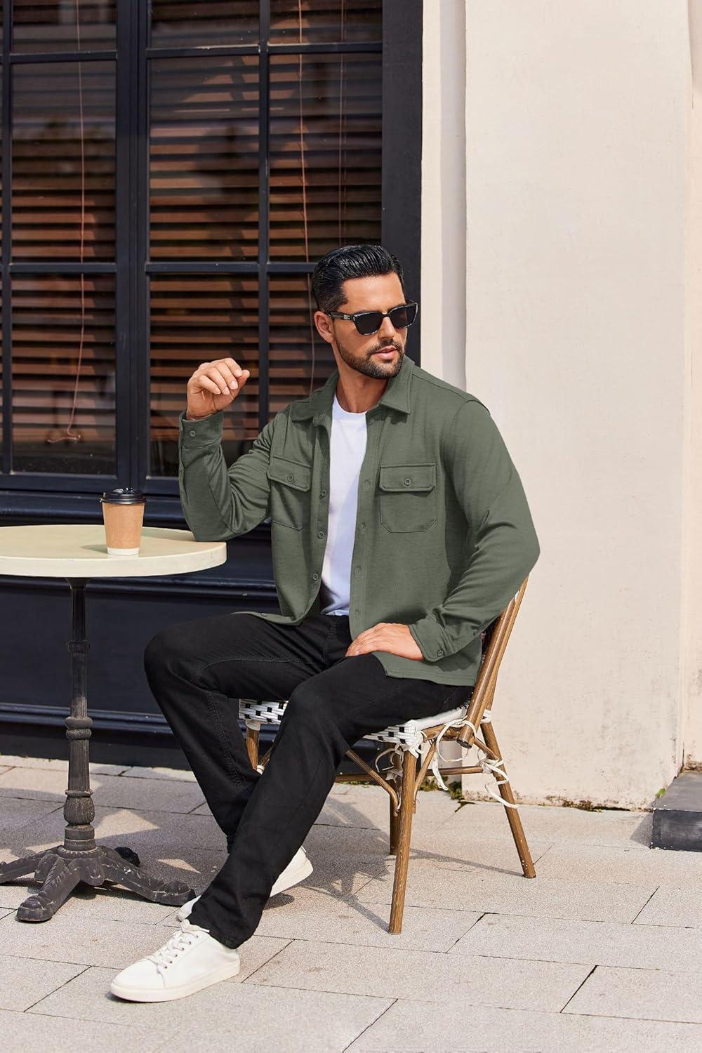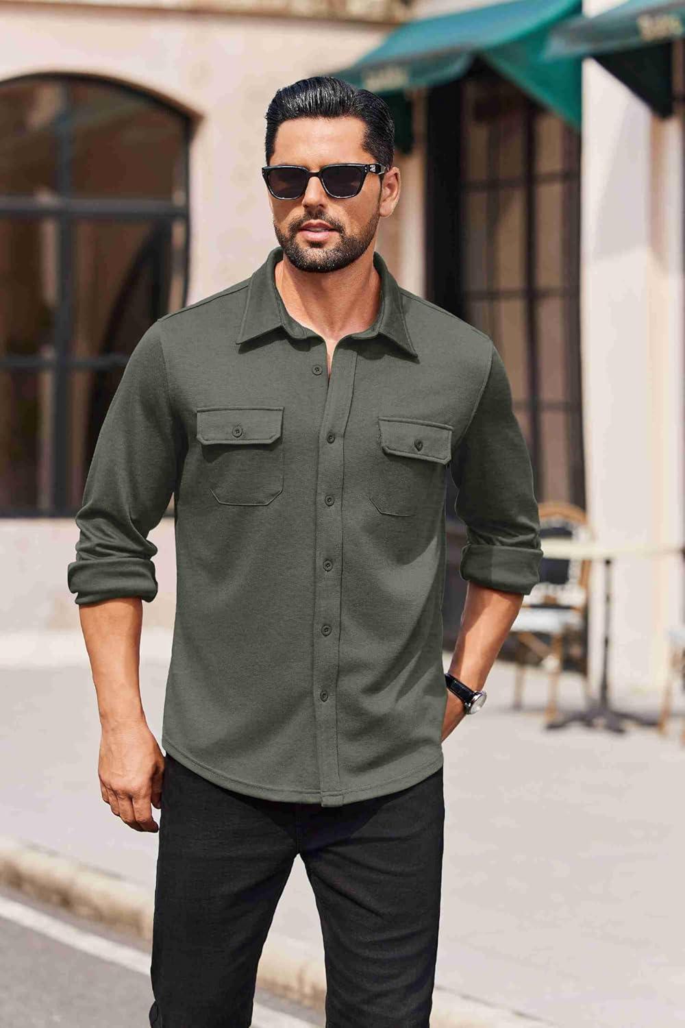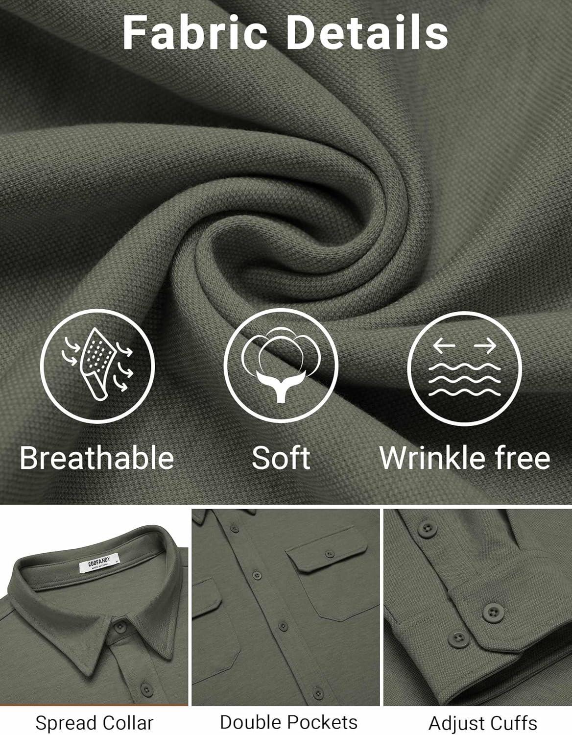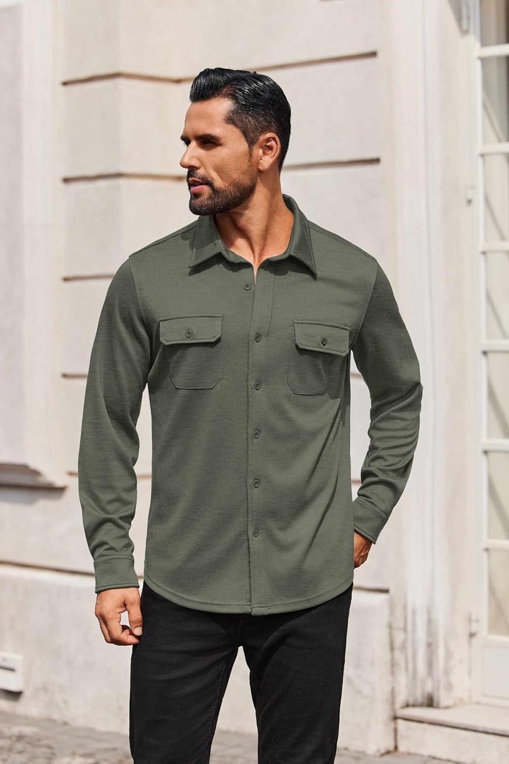 COOFANDY Mens Long Sleeve Shirts Casual Button Down Shirt Wrinkle Free Dress Shirt with Pocket(Army Green)