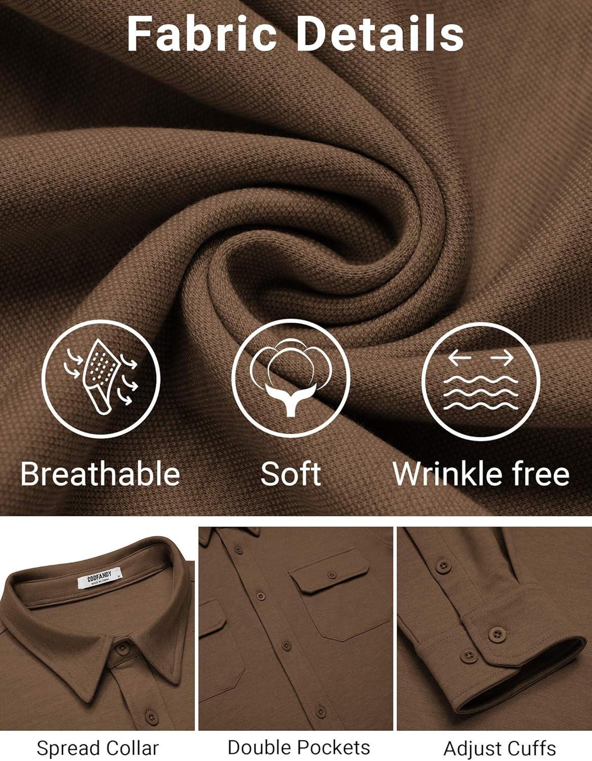 COOFANDY Mens Long Sleeve Shirts Casual Button Down Shirt Wrinkle Free Dress Shirt with Pocket(Brown)