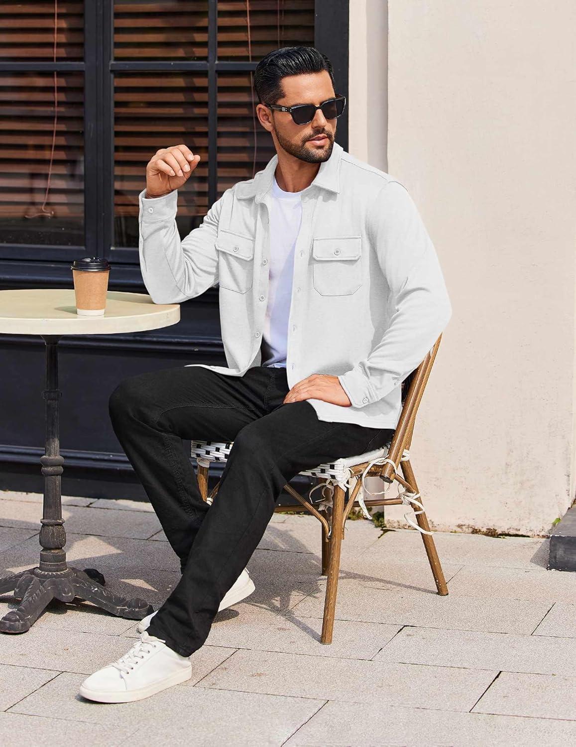 COOFANDY Mens Long Sleeve Shirts Casual Button Down Shirt Wrinkle Free Dress Shirt with Pocket(White)