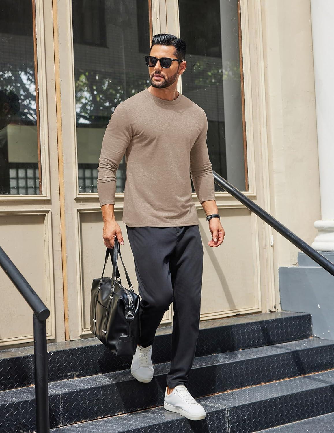 COOFANDY Mens Long Sleeve T Shirts Crew Neck Casual Basic Tee Shirt Lightweight Pullover Shirts(1 Pack-khaki)
