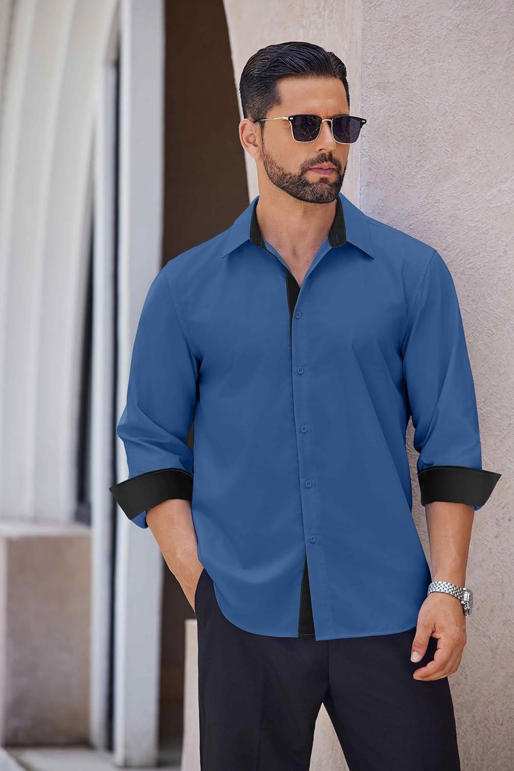 COOFANDY Men’s Long Sleeve Wrinkle Free Dress Shirts 2024 Inner Contrast Business Casual Button Down Shirt(Light Blue)