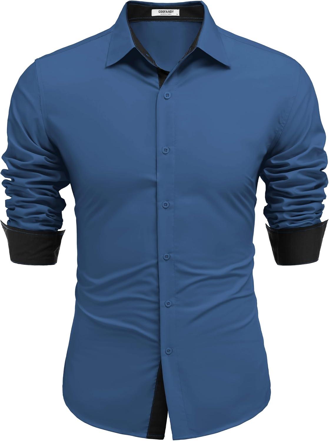 COOFANDY Men’s Long Sleeve Wrinkle Free Dress Shirts 2024 Inner Contrast Business Casual Button Down Shirt(Navy)