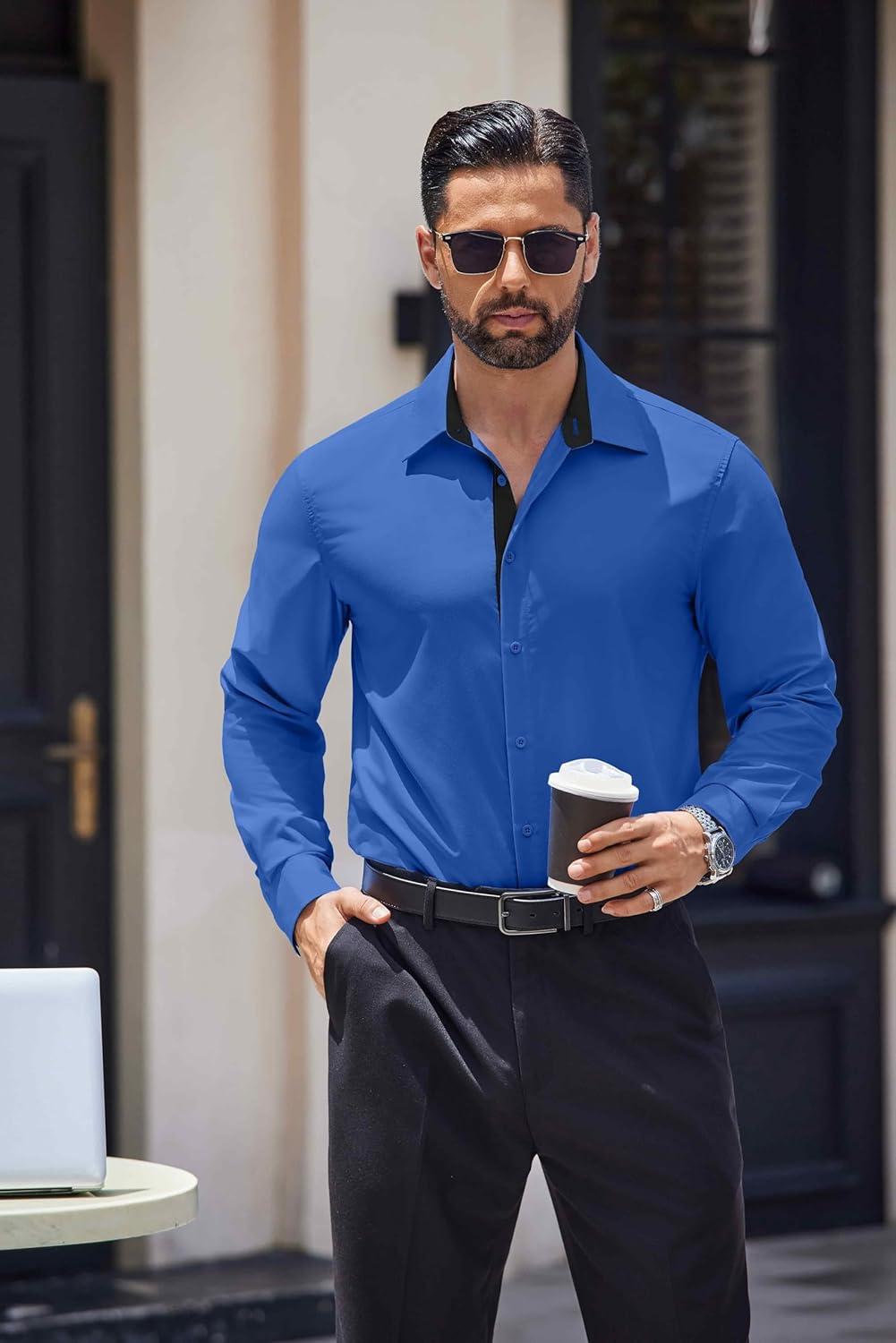 COOFANDY Men’s Long Sleeve Wrinkle Free Dress Shirts 2024 Inner Contrast Business Casual Button Down Shirt(Royal Blue)