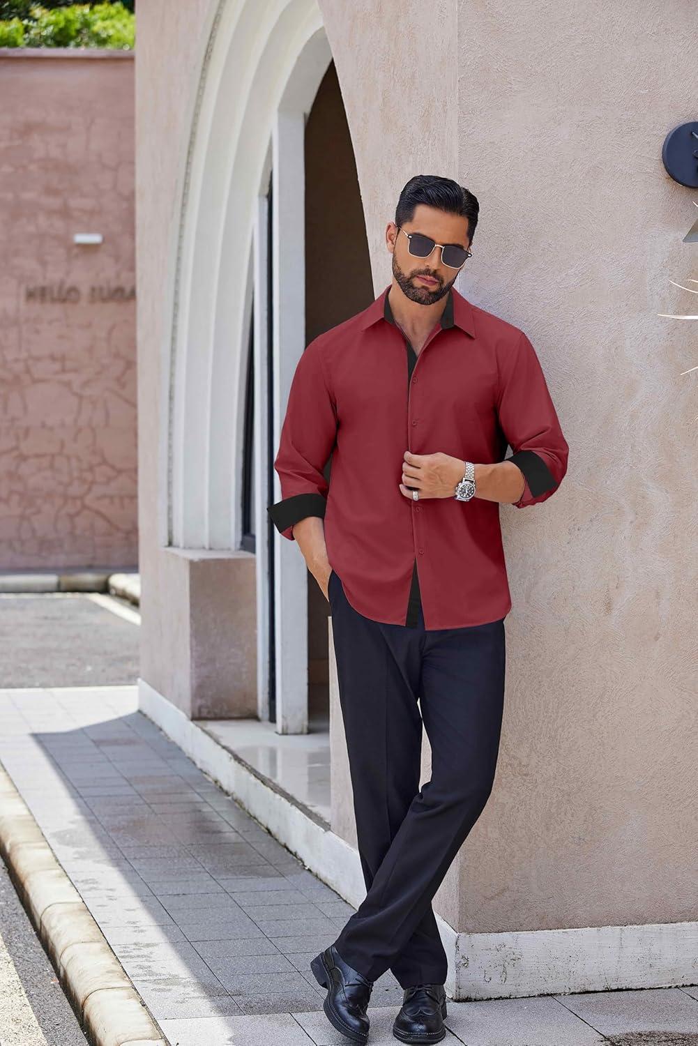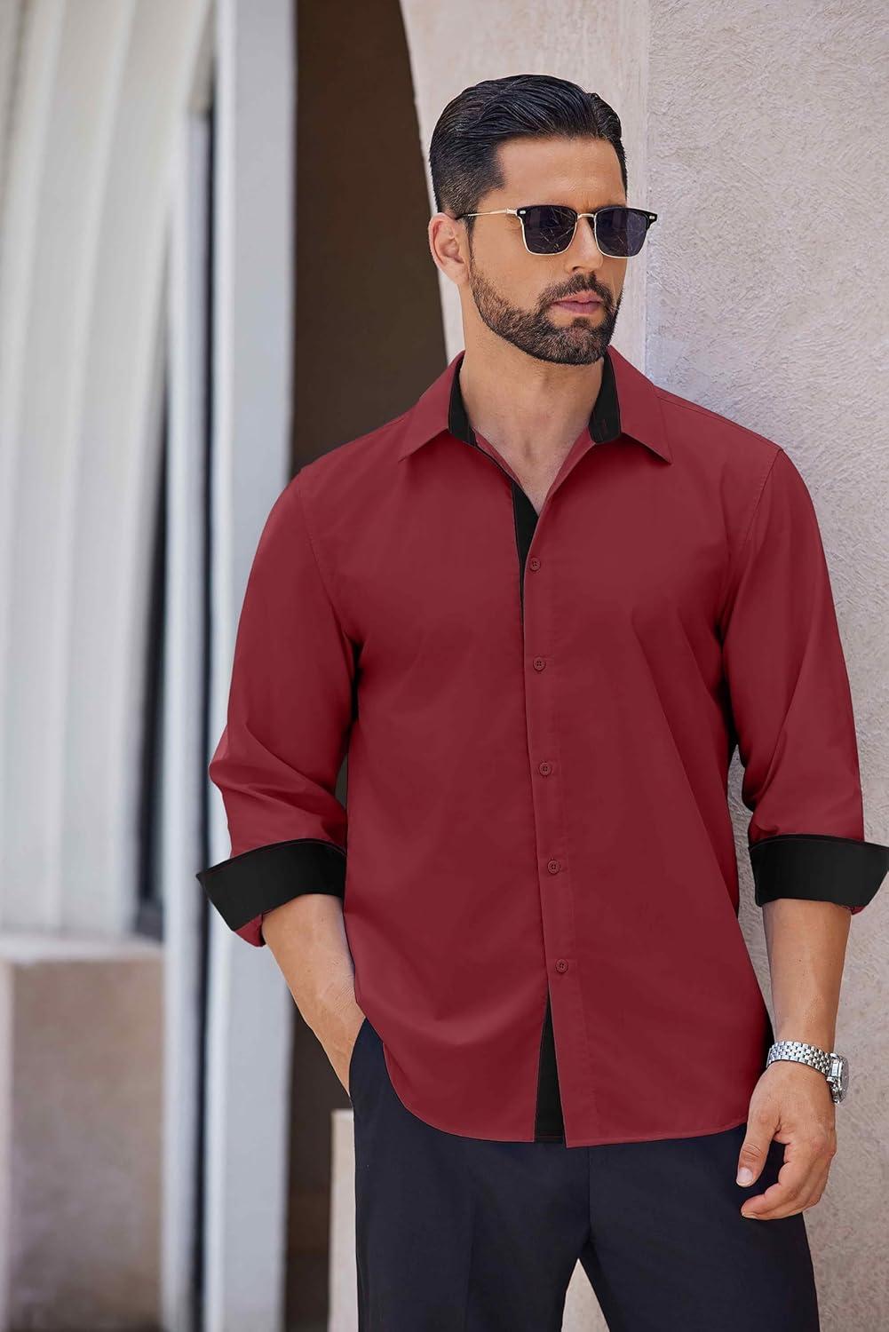 COOFANDY Men’s Long Sleeve Wrinkle Free Dress Shirts 2024 Inner Contrast Business Casual Button Down Shirt(Wine Red)