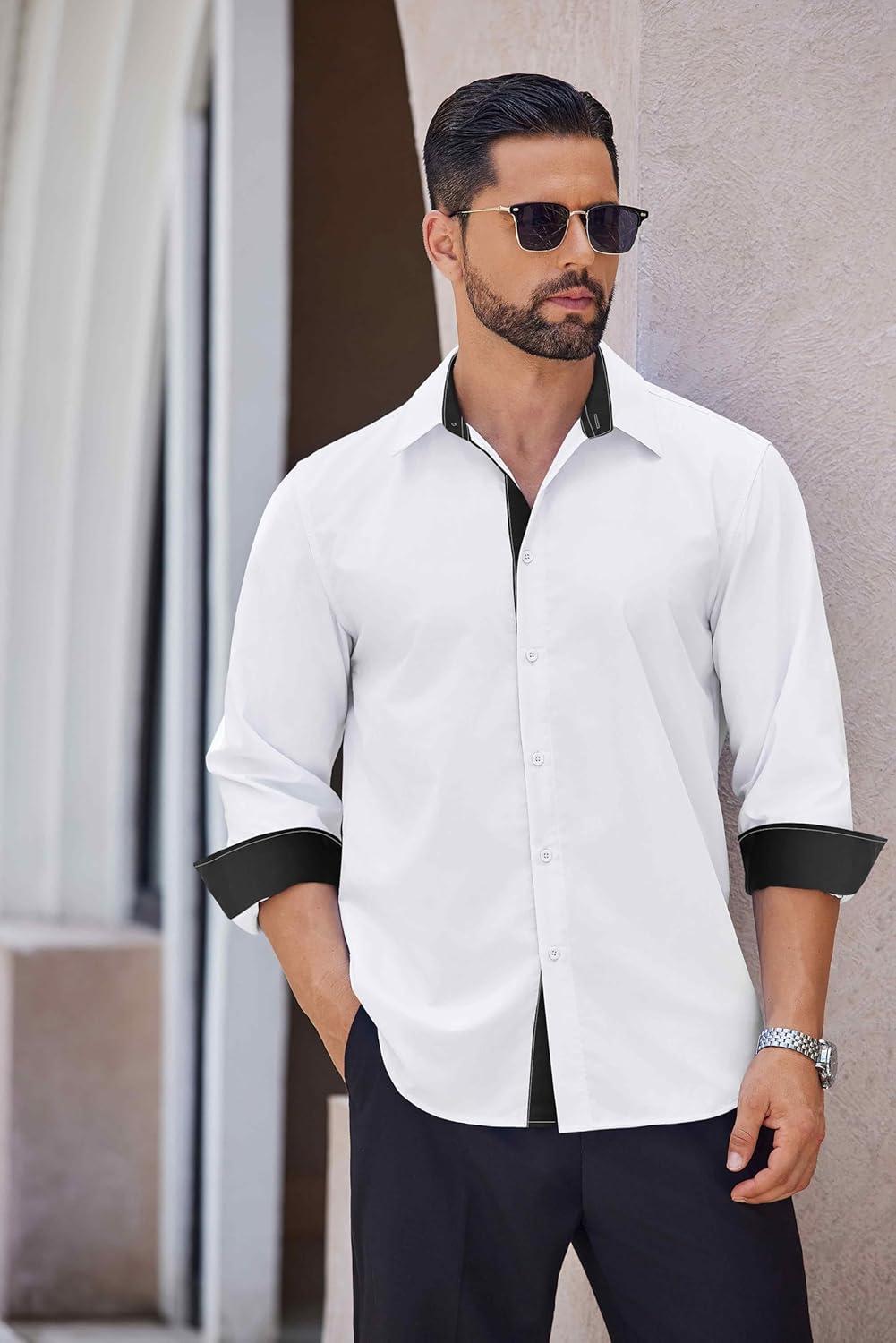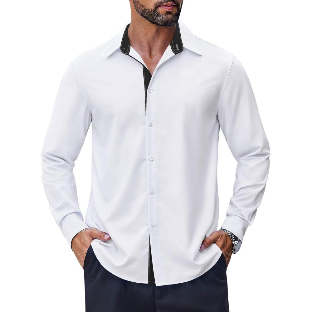 Be the first to review “COOFANDY Men’s Long Sleeve Wrinkle Free Dress Shirts Inner Contrast Business Casual Button Down Shirt(White/Black)” Cancel reply