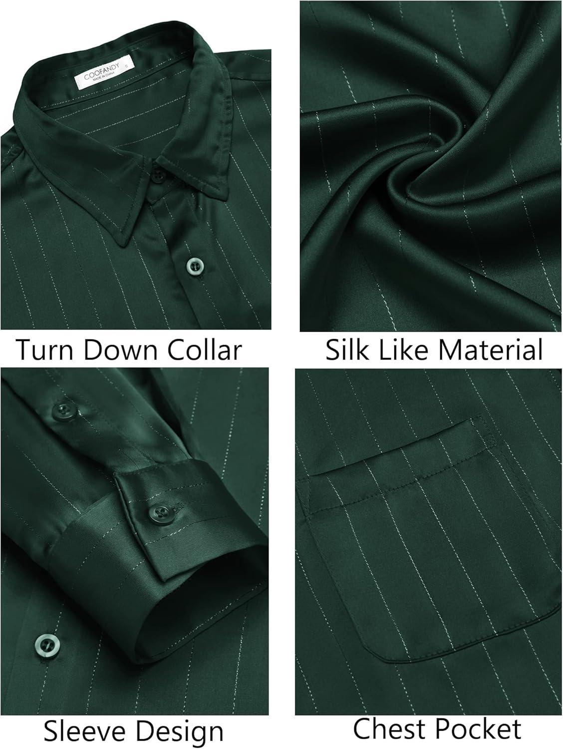 COOFANDY Mens Luxury Satin Dress Shirt Shiny Silk Long Sleeve Button Up Shirts Wedding Shirt Party Prom(Army Green)