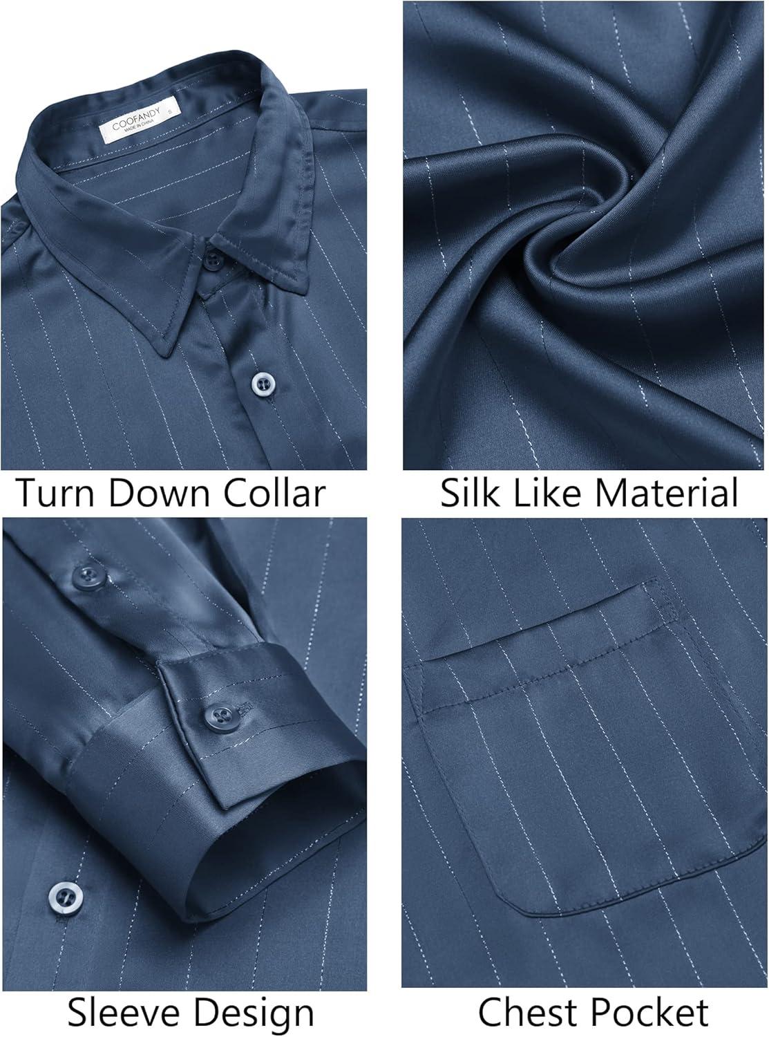 COOFANDY Mens Luxury Satin Dress Shirt Shiny Silk Long Sleeve Button Up Shirts Wedding Shirt Party Prom(Dark Blue Gray)