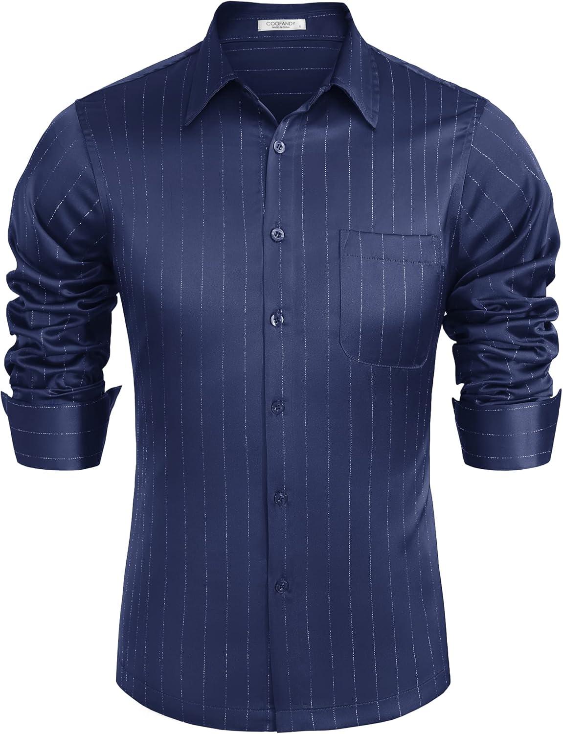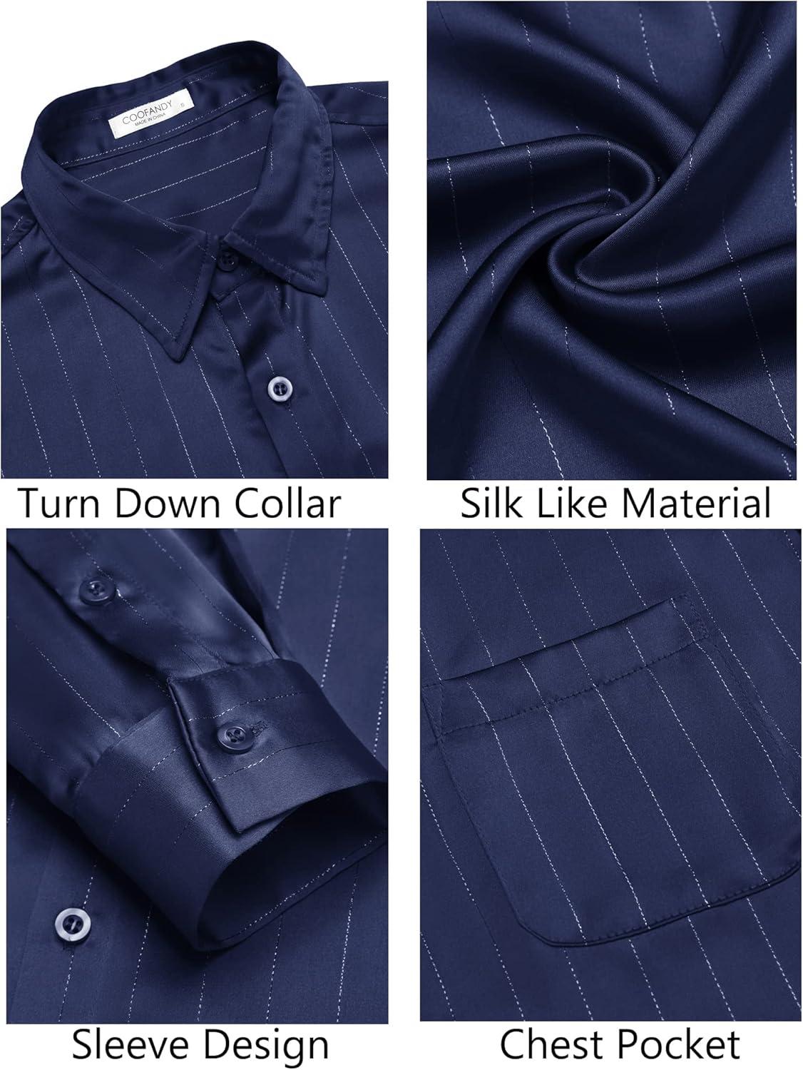 COOFANDY Mens Luxury Satin Dress Shirt Shiny Silk Long Sleeve Button Up Shirts Wedding Shirt Party Prom(Navy Blue)