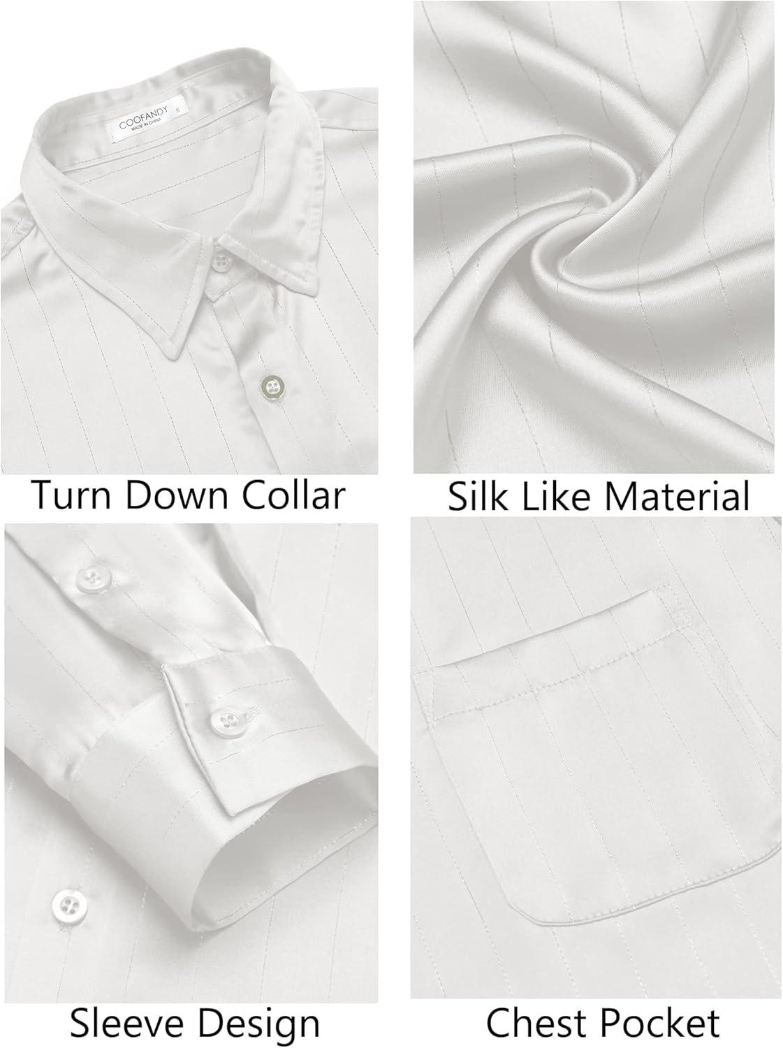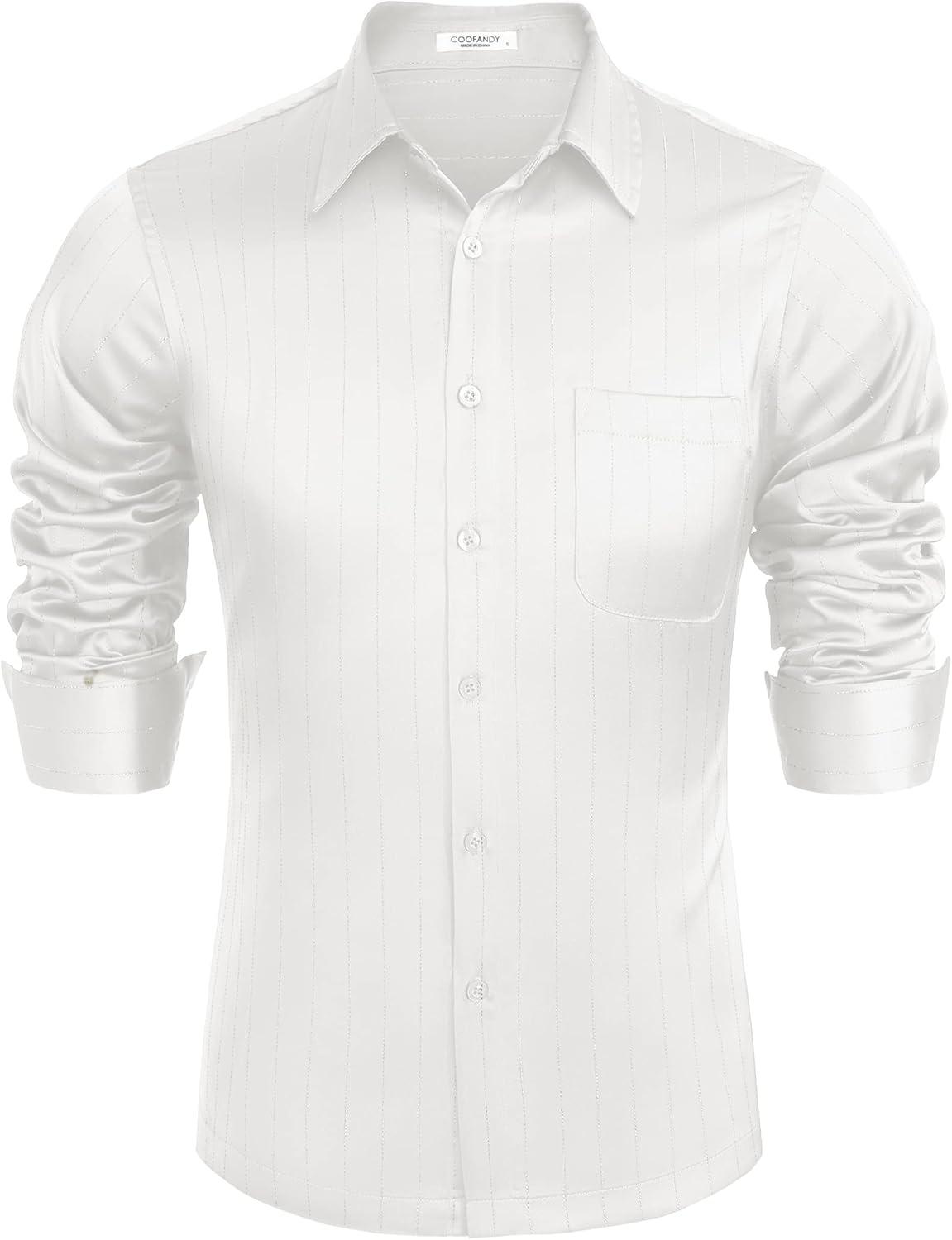 COOFANDY Mens Luxury Satin Dress Shirt Shiny Silk Long Sleeve Button Up Shirts Wedding Shirt Party Prom(White)