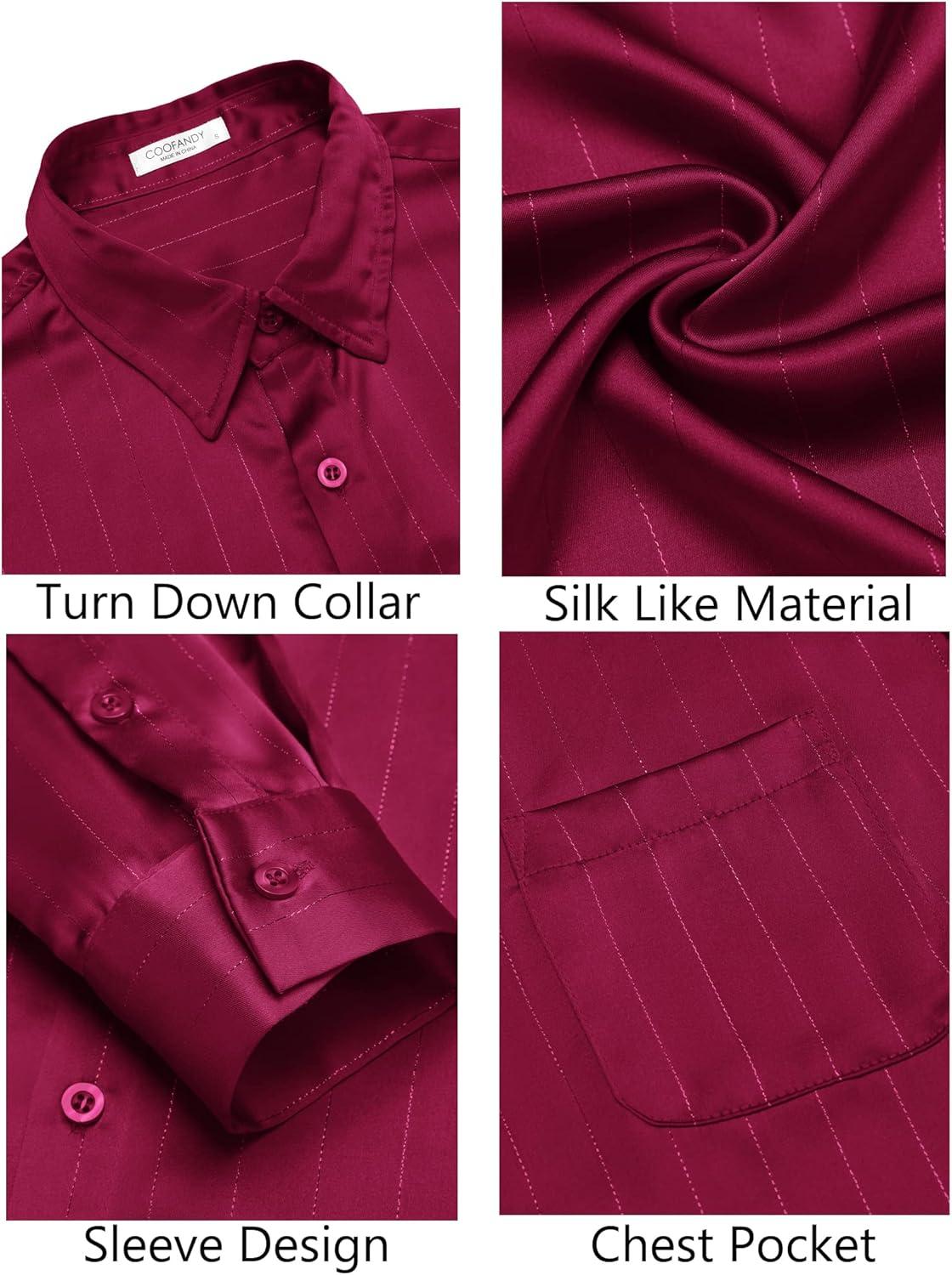COOFANDY Mens Luxury Satin Dress Shirt Shiny Silk Long Sleeve Button Up Shirts Wedding Shirt Party Prom(Wine Red)