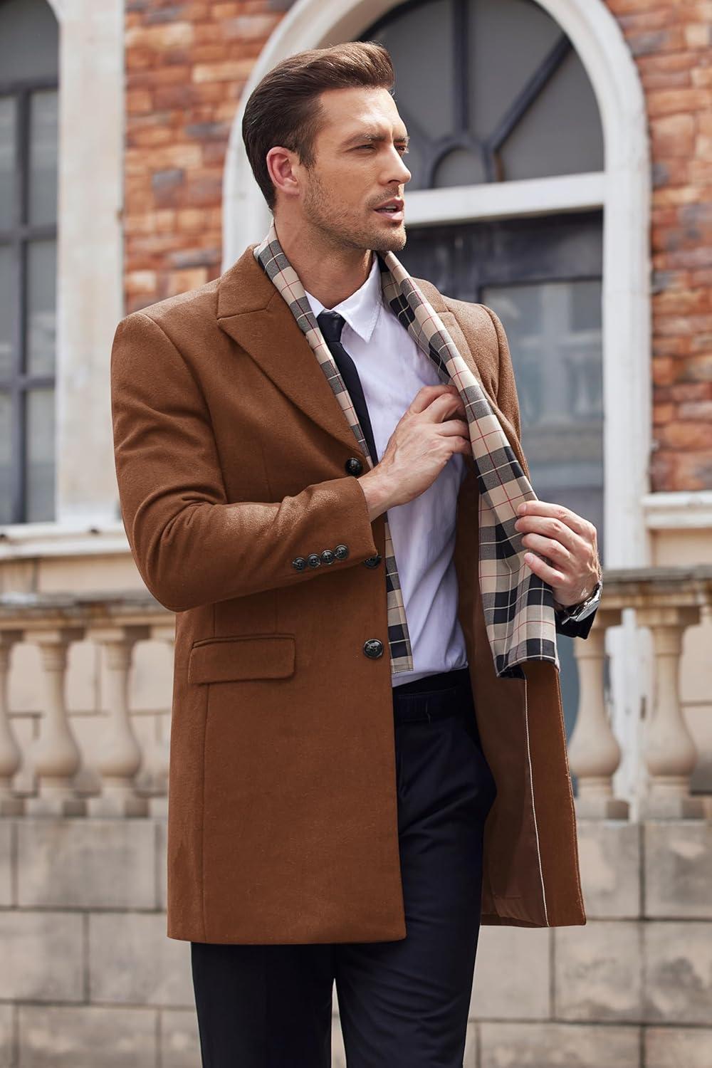COOFANDY mens Men Pea Coat(Brown Plaid)