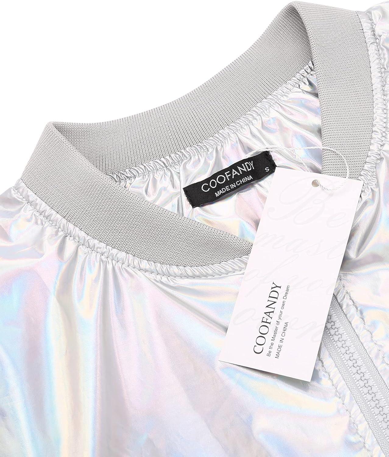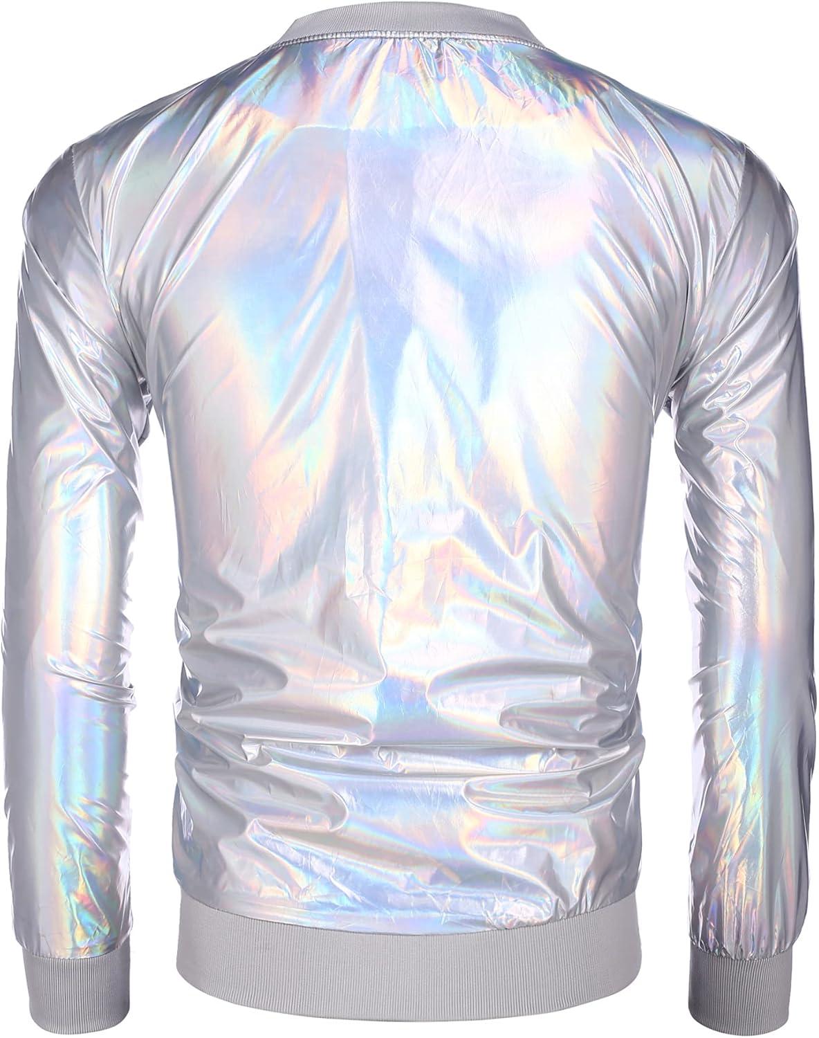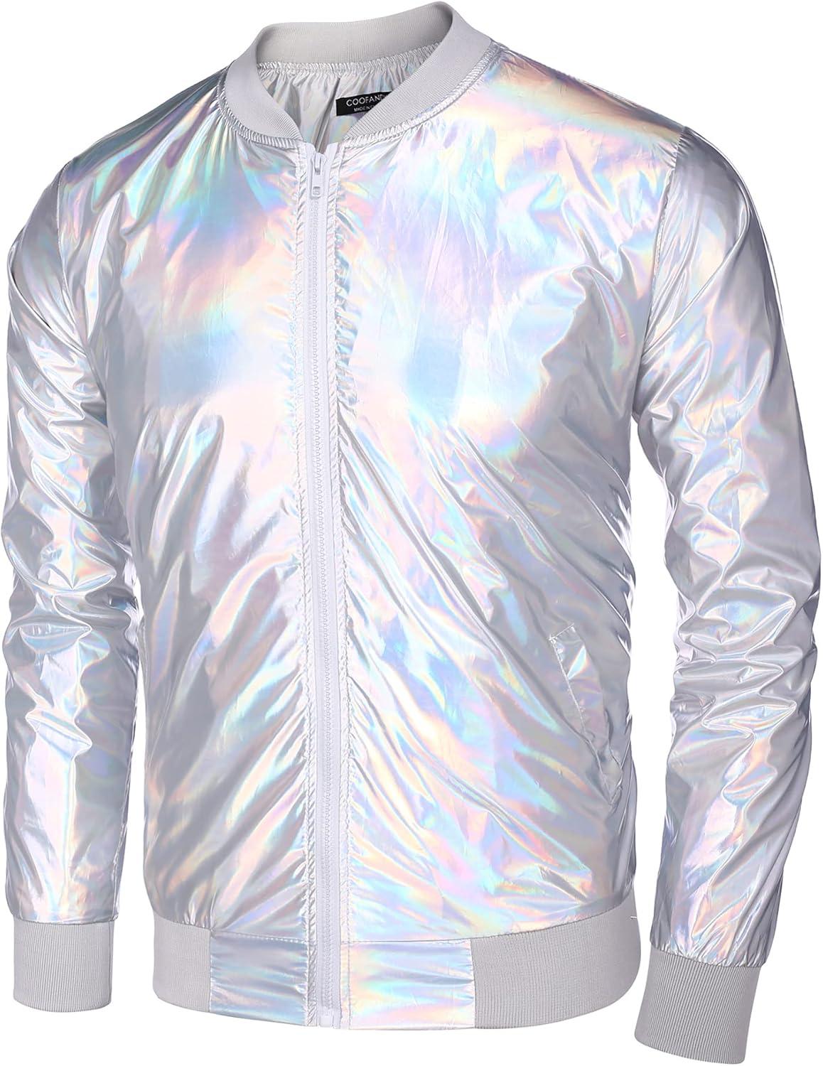 COOFANDY Men’s Metallic Jacket 70s Disco Dance Party Costume Shiny Varsity Zipper Baseball Bomber Jacket(Multicolored)