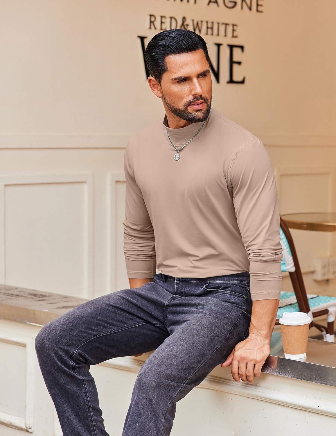 COOFANDY Mens Mock Turtleneck Long Sleeve Shirts Casual Basic T-Shirt Lightweight Mockneck Pullover Sweater for Men(Khaki)