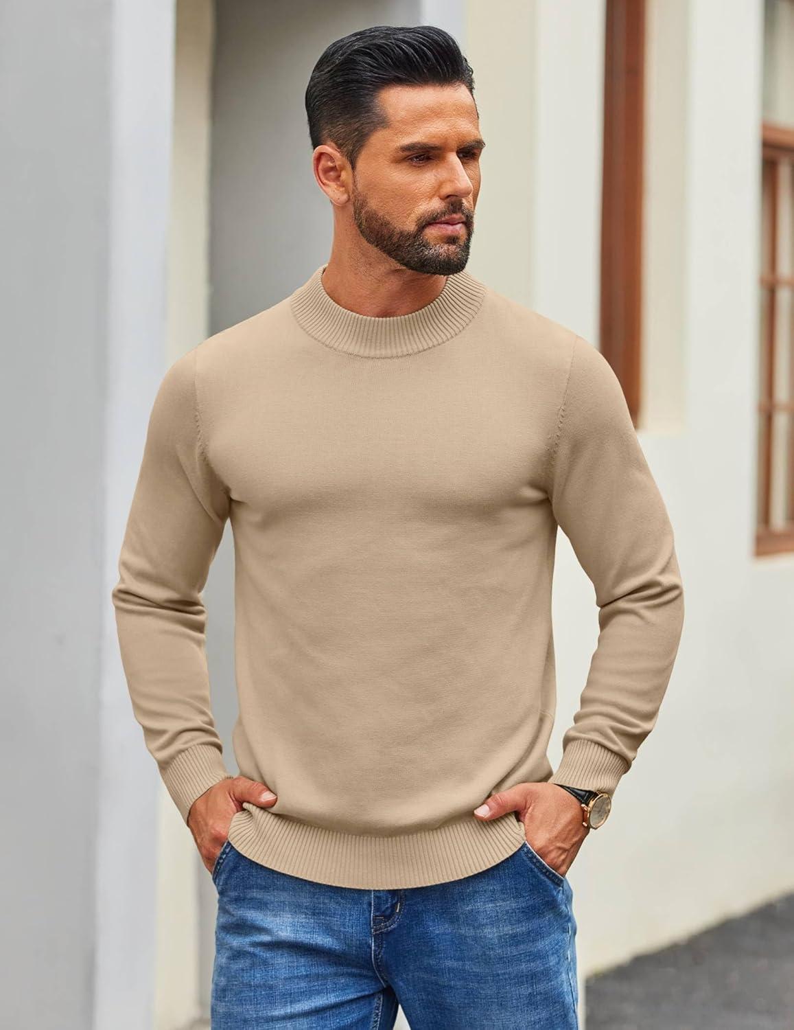 COOFANDY Men’s Mock Turtleneck Ribbed Knit Pullover Sweater Casual Lightweight Slim fit Dress Sweater(Beige)