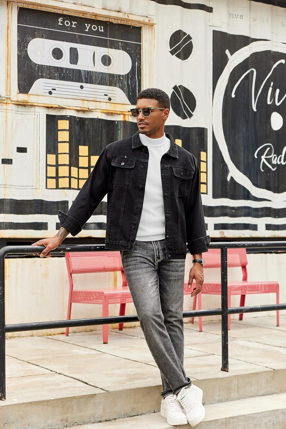 COOFANDY Men’s Mock Turtleneck Sweater Short Sleeve Casual Basic Tops Ribbed Knit Pullover Solid Tee(Pat3 Striped Black)
