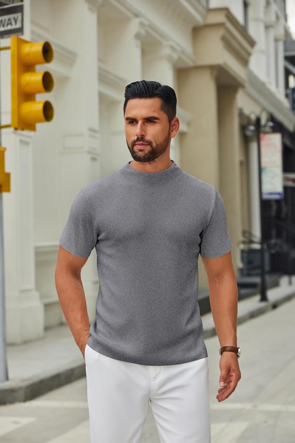 COOFANDY Men’s Mock Turtleneck Sweater Short Sleeve Casual Knitted T-Shirts Thermal Tops Solid Basic Tee(Dark Grey)