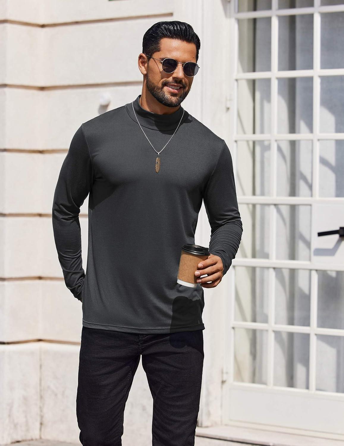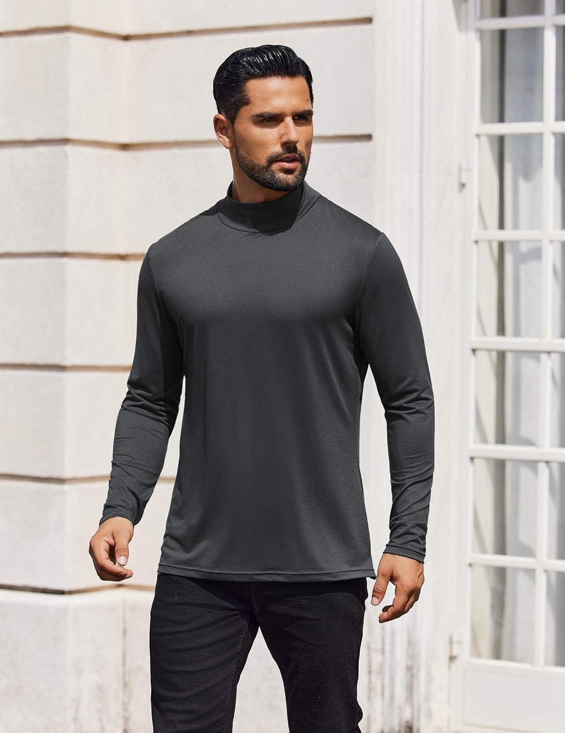 COOFANDY Mens Mock Turtleneck T-Shirts Long Sleeve Solid Color Tees Shirts Basic Casual Slim Fit Pullover T Shirts(Deep Grey)