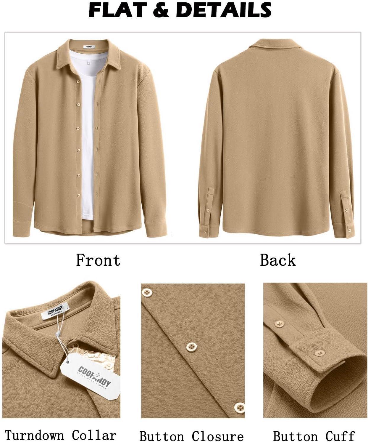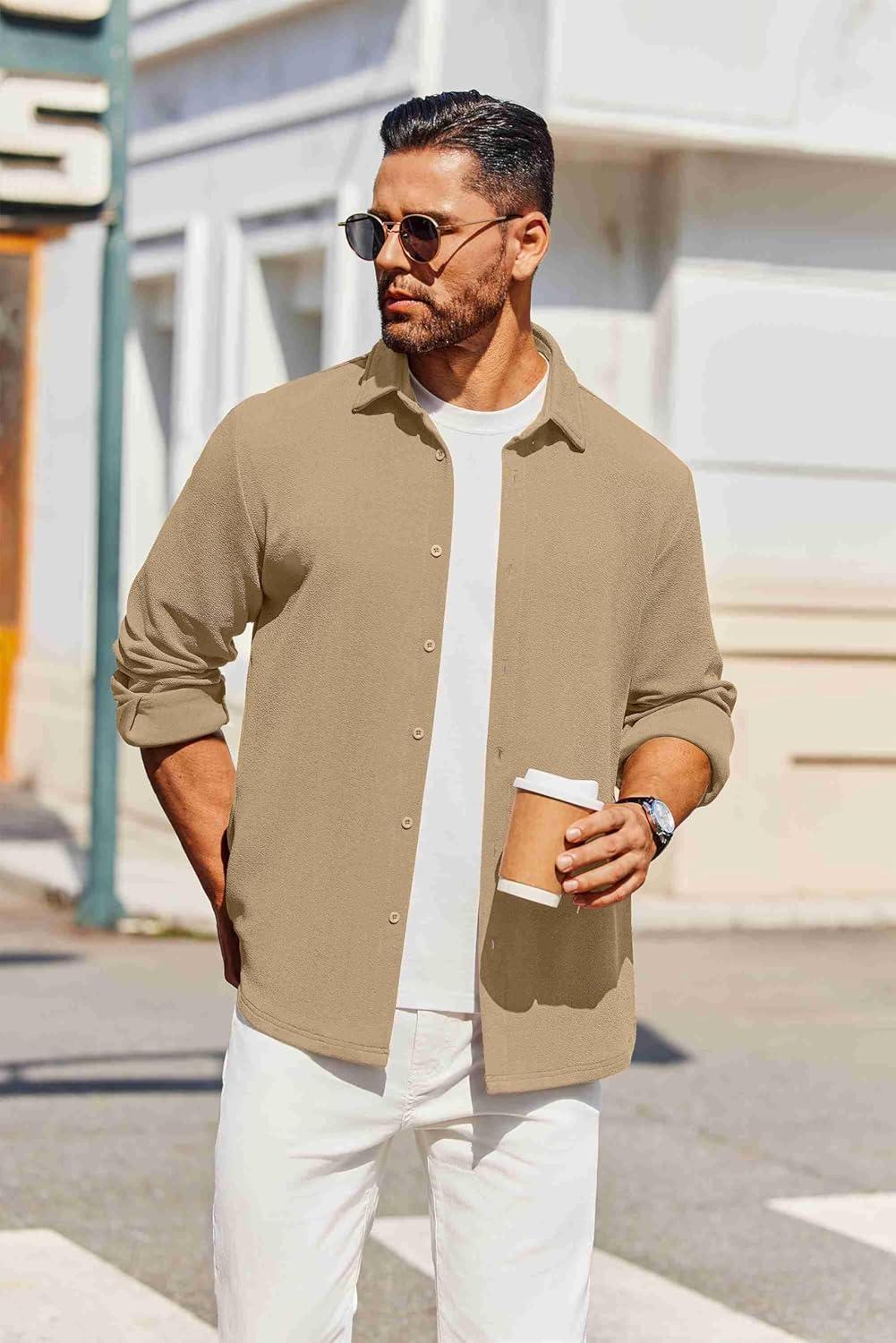 COOFANDY Classic Long Sleeve Button-Down Shirt Jacket with Textured Stretchy Fabric