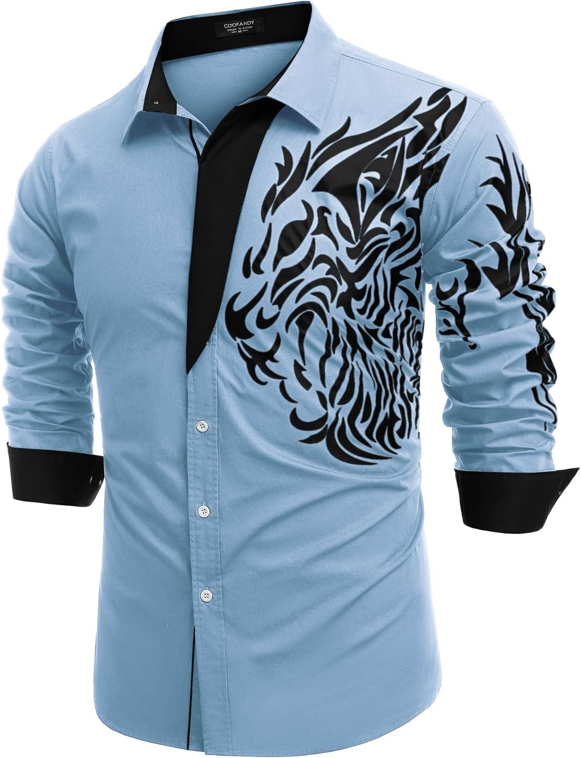 COOFANDY Men’s Print Button Down Dress Shirt Fashion Long Sleeve Casual Shirts(Blue (Tiger))