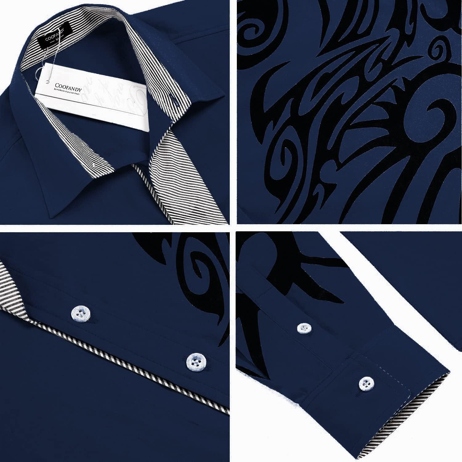 COOFANDY Men’s Print Button Down Dress Shirt Fashion Long Sleeve Casual Shirts(Navy Blue)