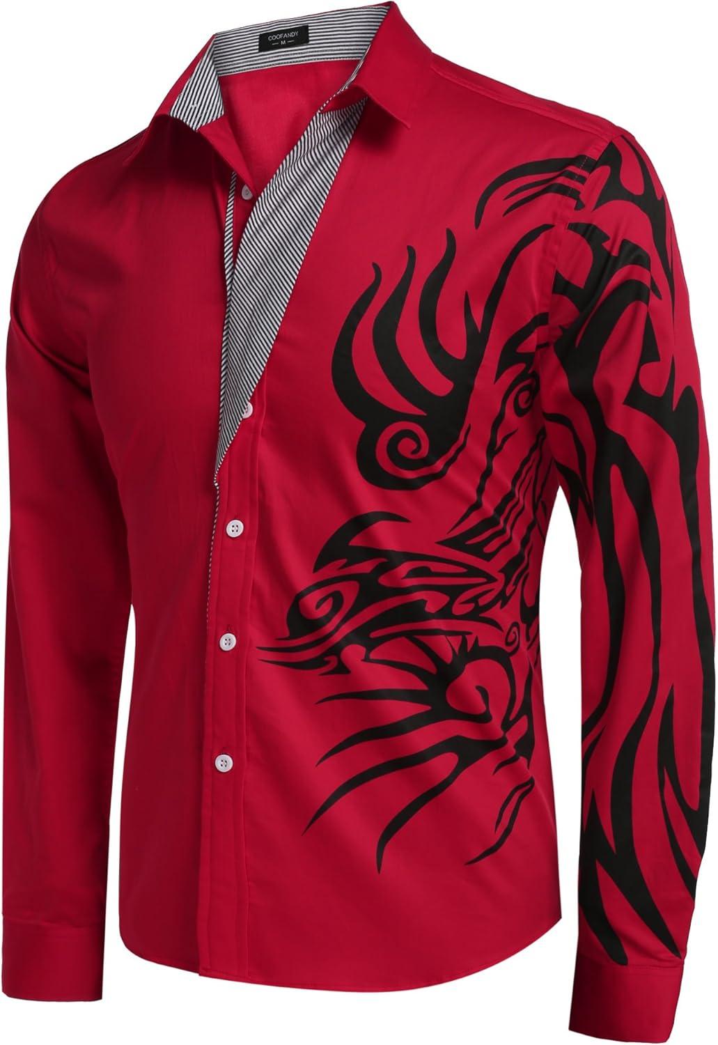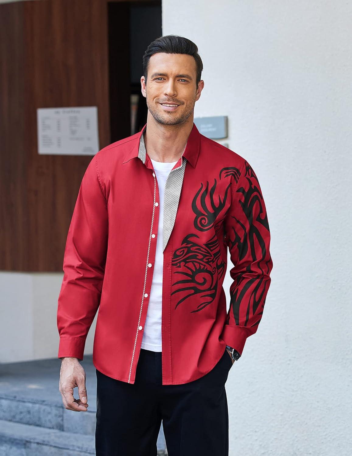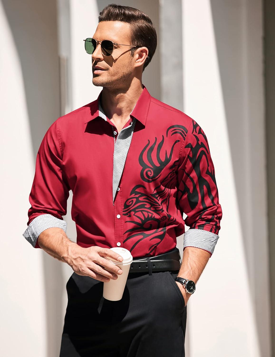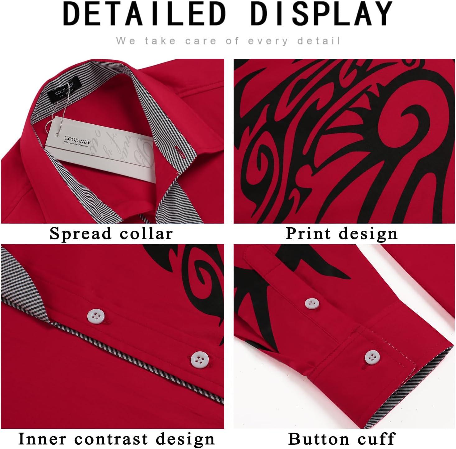 COOFANDY Men’s Print Button Down Dress Shirt Fashion Long Sleeve Casual Shirts(Red)