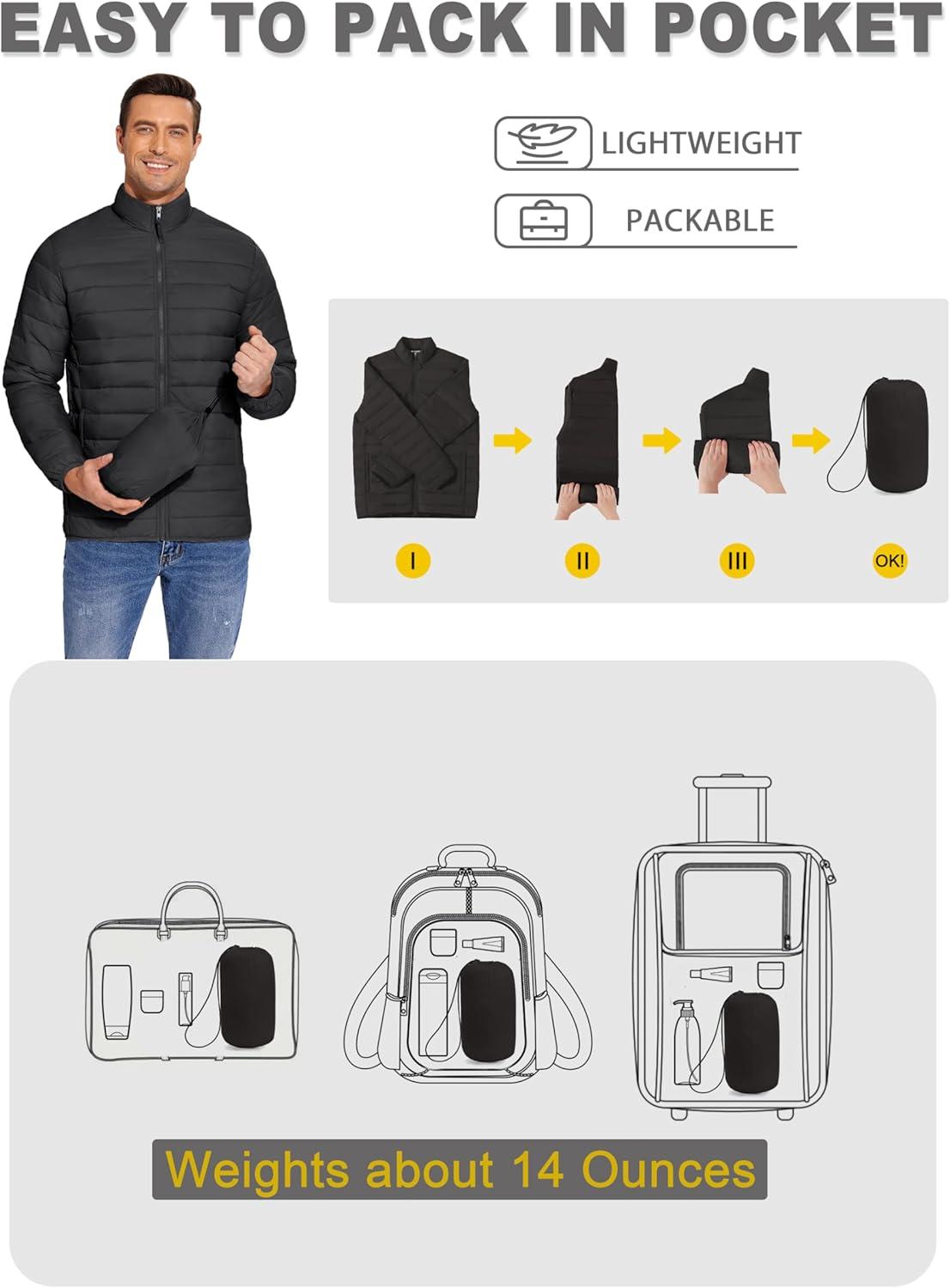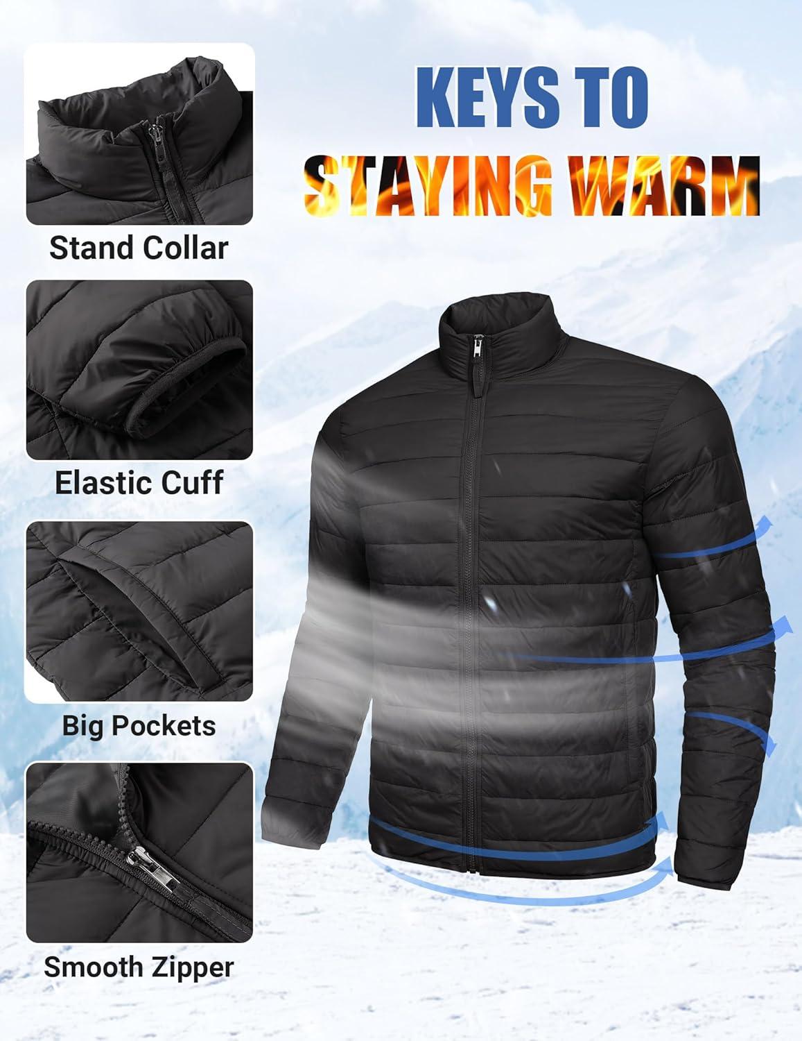 COOFANDY Mens Puffer Jacket Packable Lightweight Jackets Winter Coat Windproof Zipper Down Jacket(Black)
