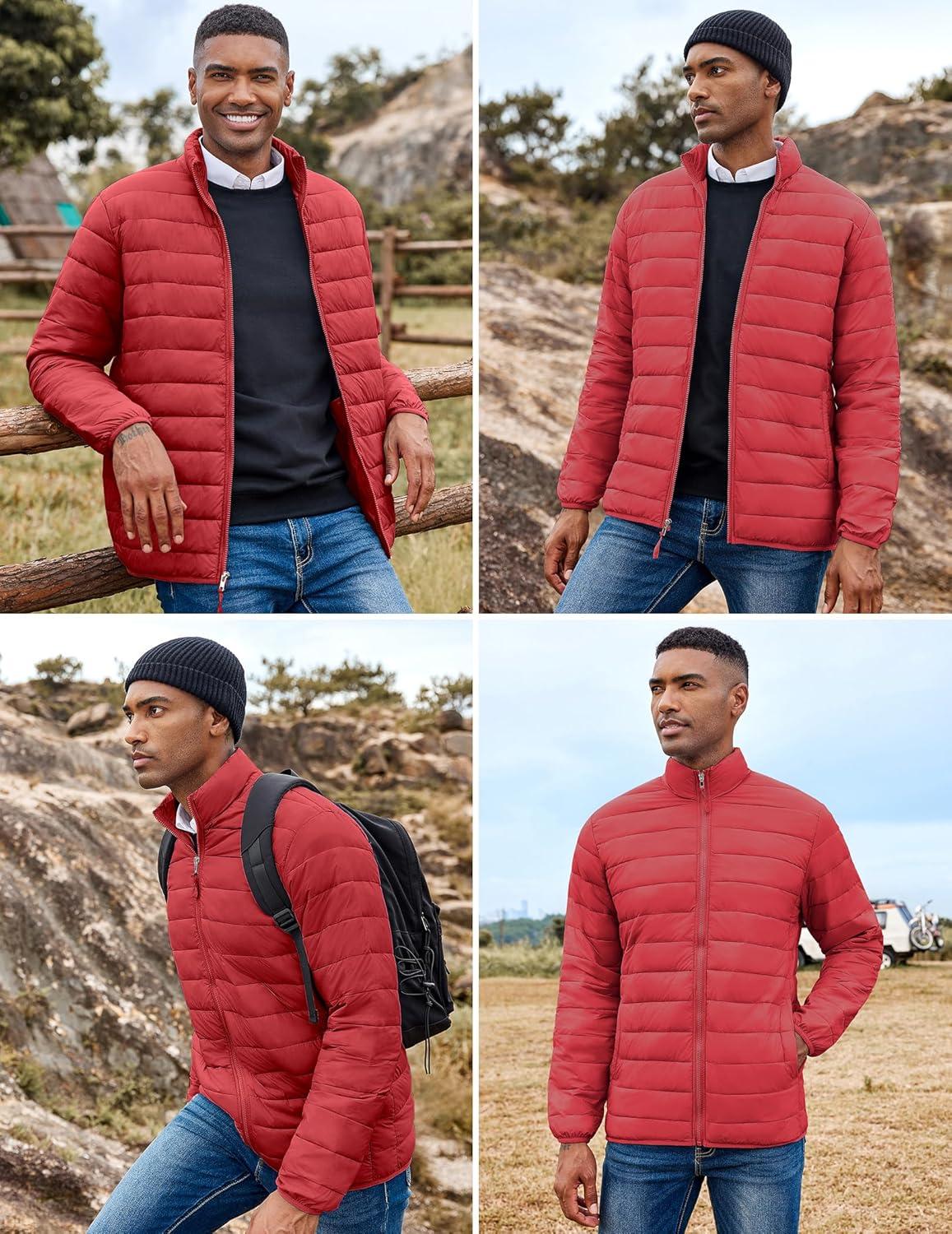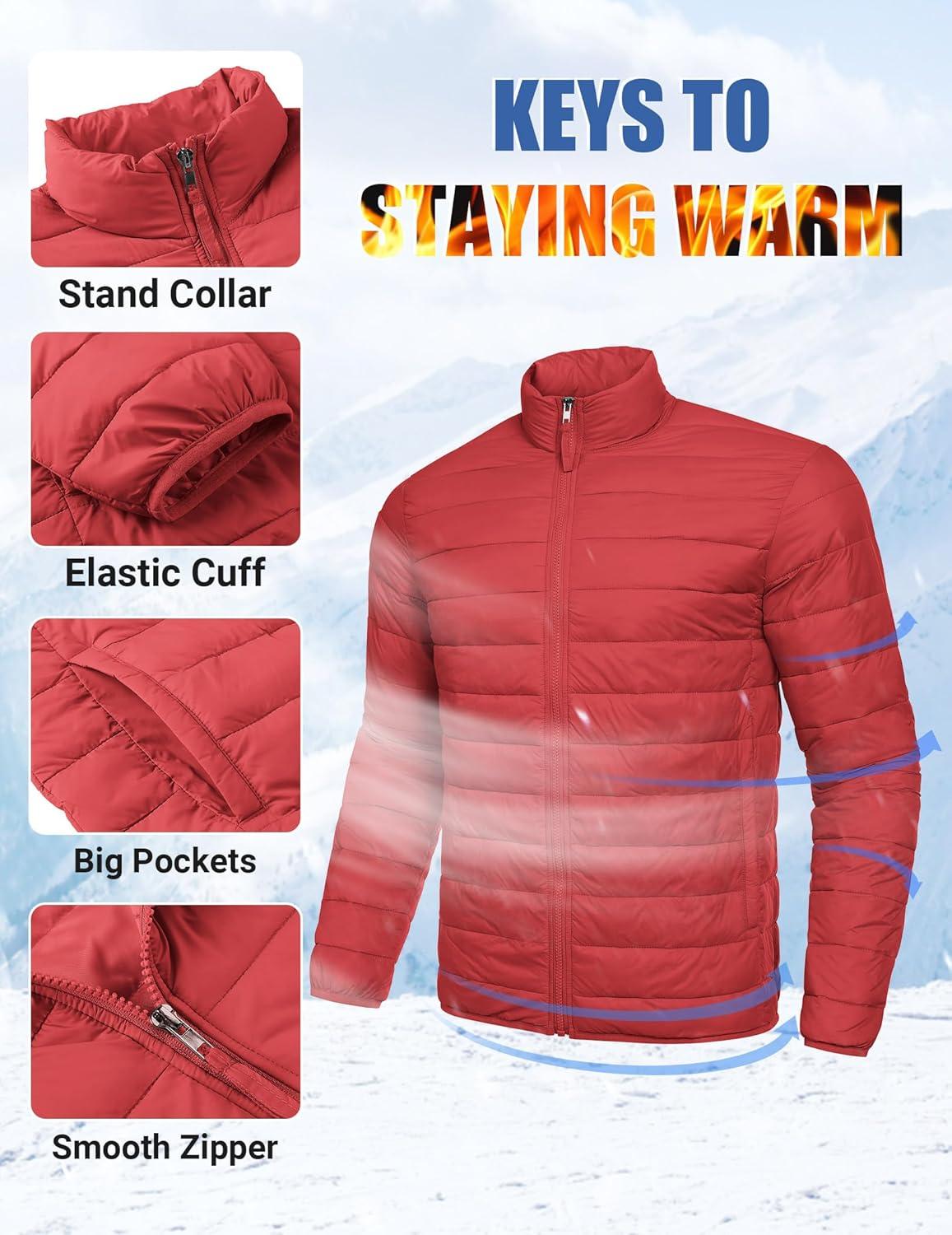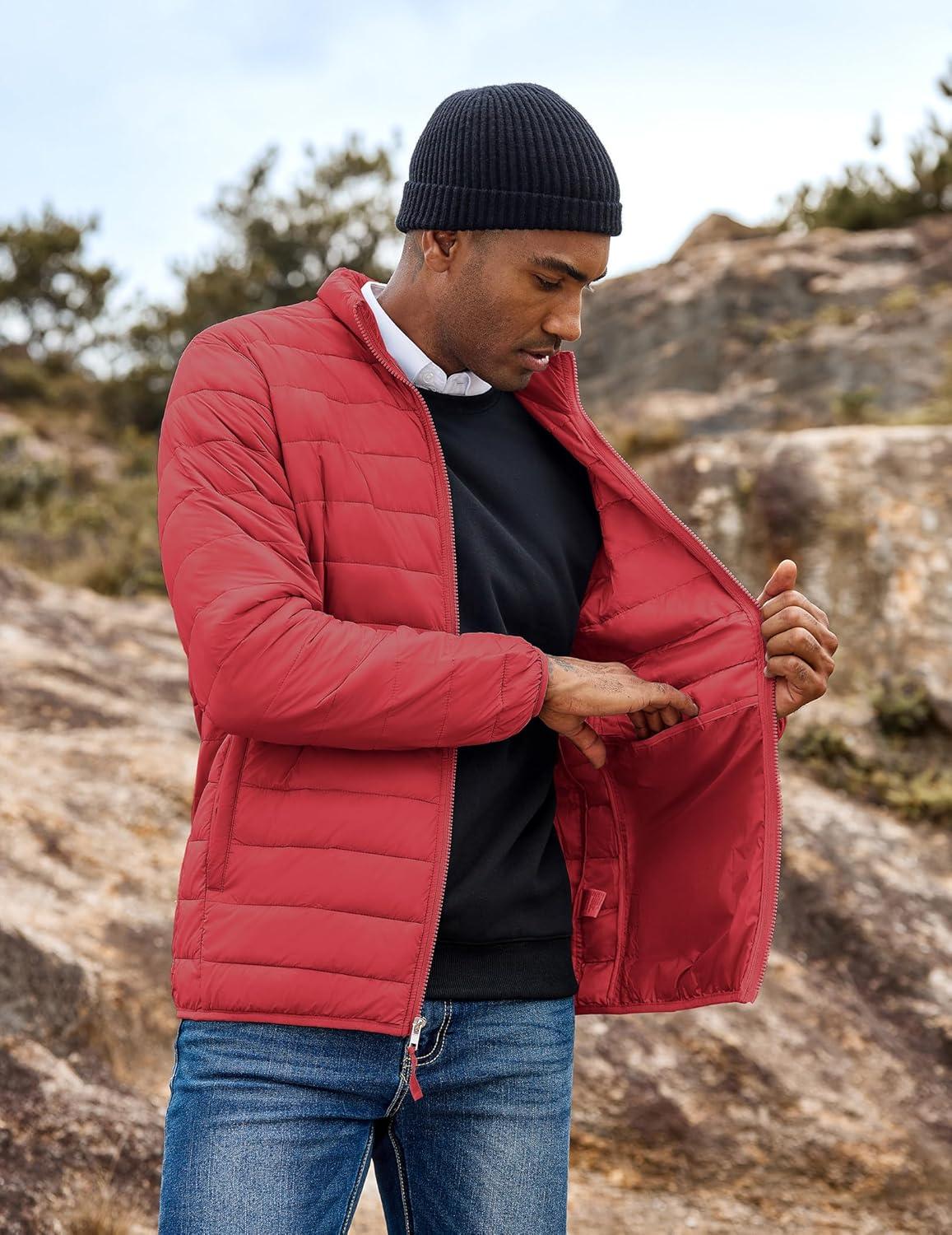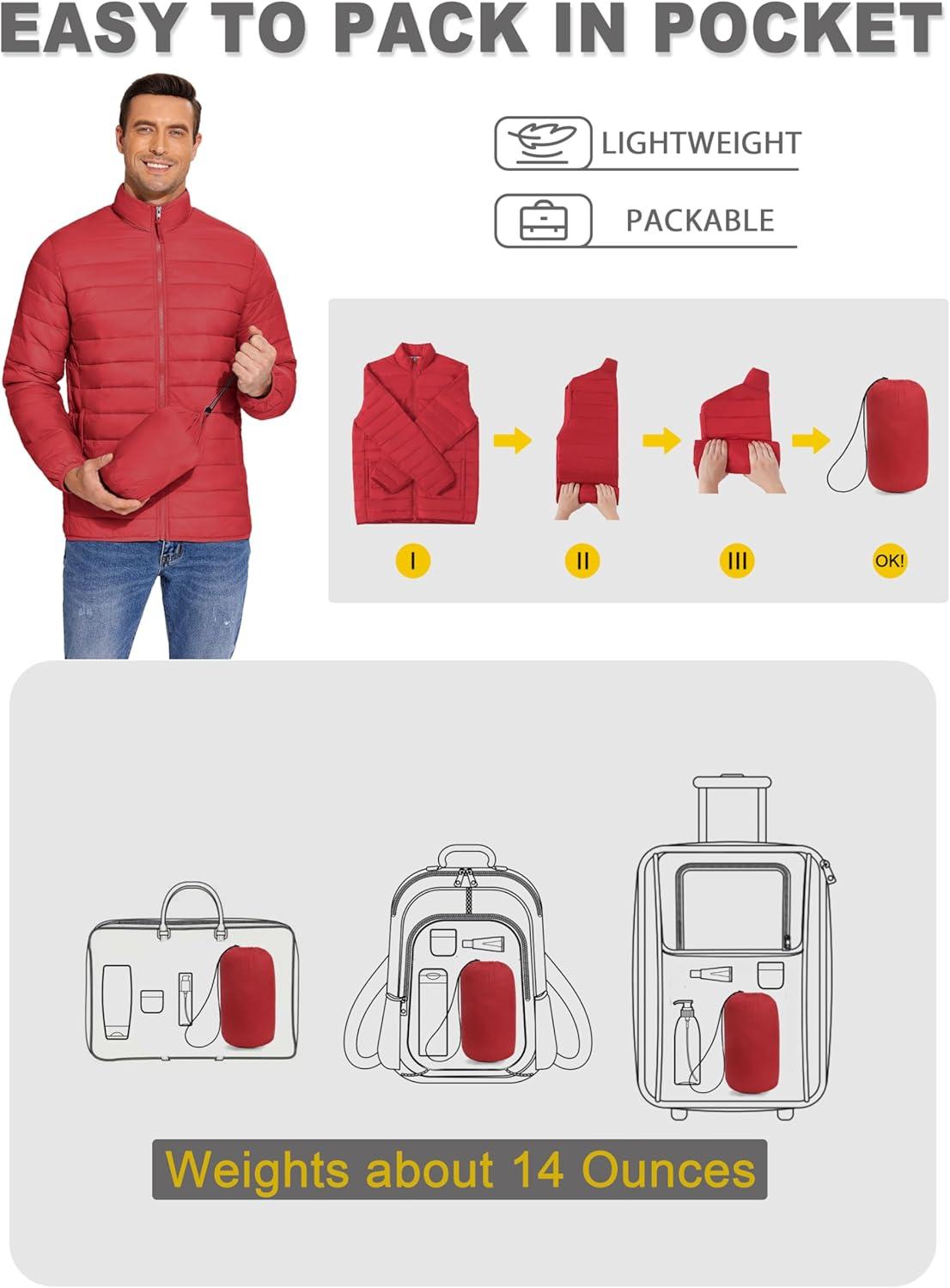 COOFANDY Mens Puffer Jacket Packable Lightweight Jackets Winter Coat Windproof Zipper Down Jacket(Dark Red)