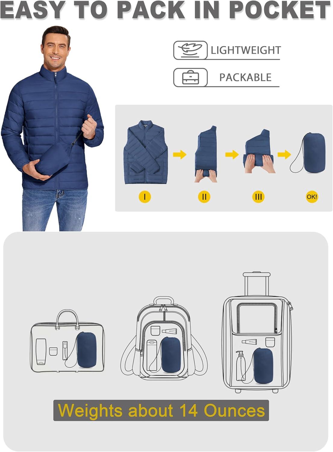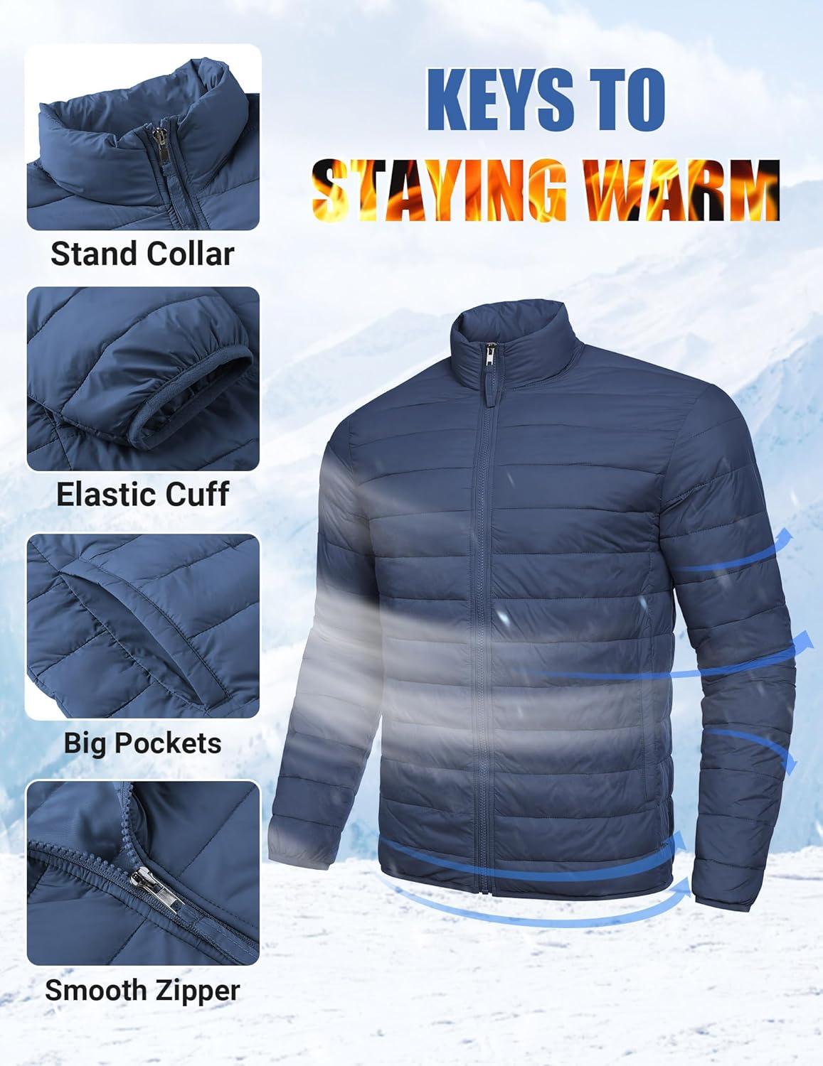 COOFANDY Mens Puffer Jacket Packable Lightweight Jackets Winter Coat Windproof Zipper Down Jacket(Denim Blue)