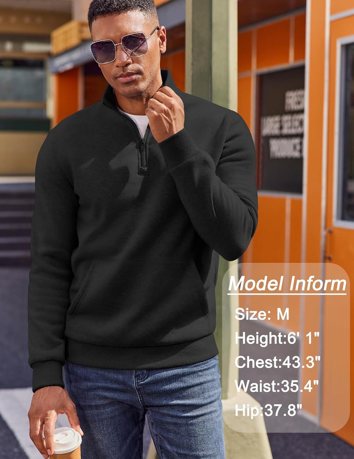 COOFANDY Mens Quarter Zip Pullover Fleece Lined Sweatshirts Long Sleeve Mock Neck Sweater with Pocket(Black)