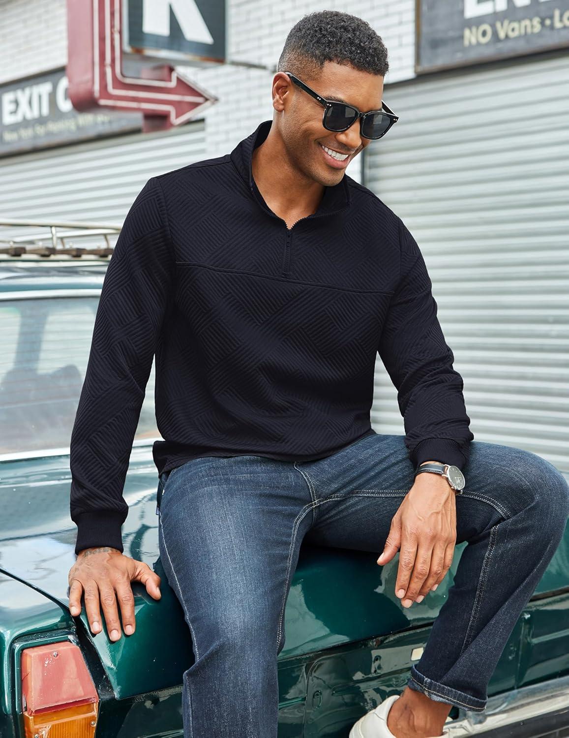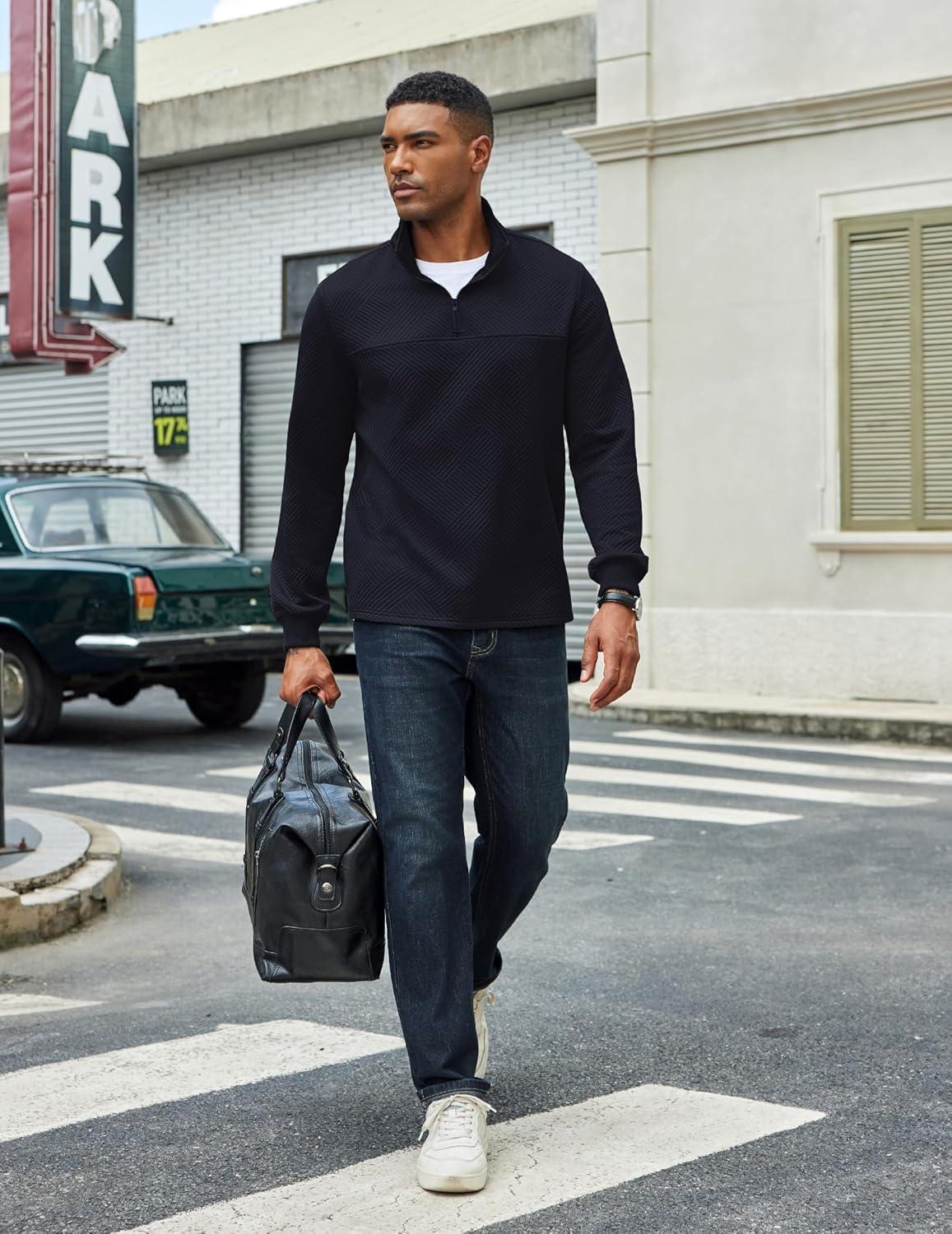 Save up to 40% on COOFANDY Men’s Quarter Zip Pullover Lightweight Textured T-Shirts Long Sleeve Casual Mock Neck Polo Shirts(Navy Blue) styles during our end-of-season sale.