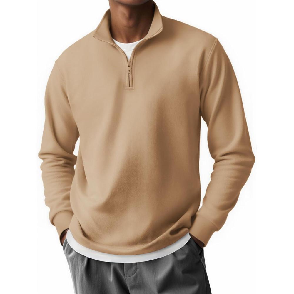 COOFANDY Mens Quarter Zip Pullover Long Sleeve Casual 1/4 Zip Sweatshirt Lightweight Solid Mock Neck Sweater Polo(Khaki)