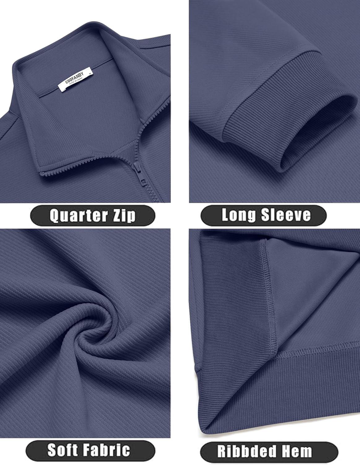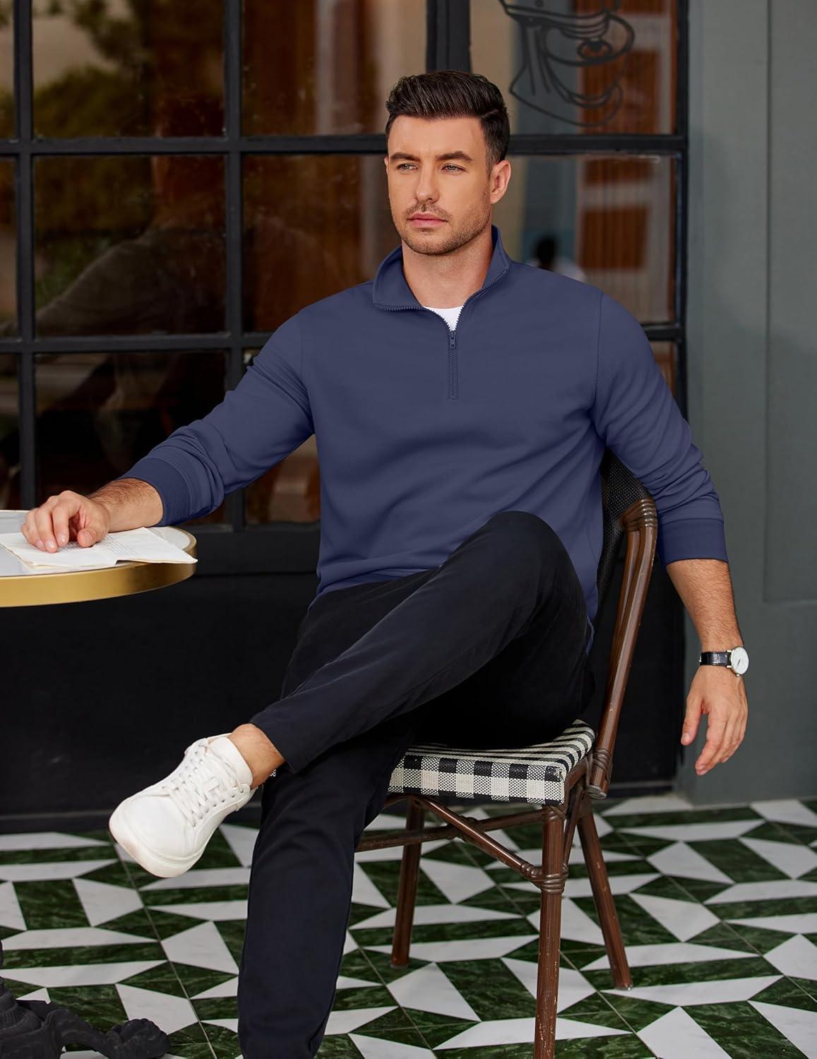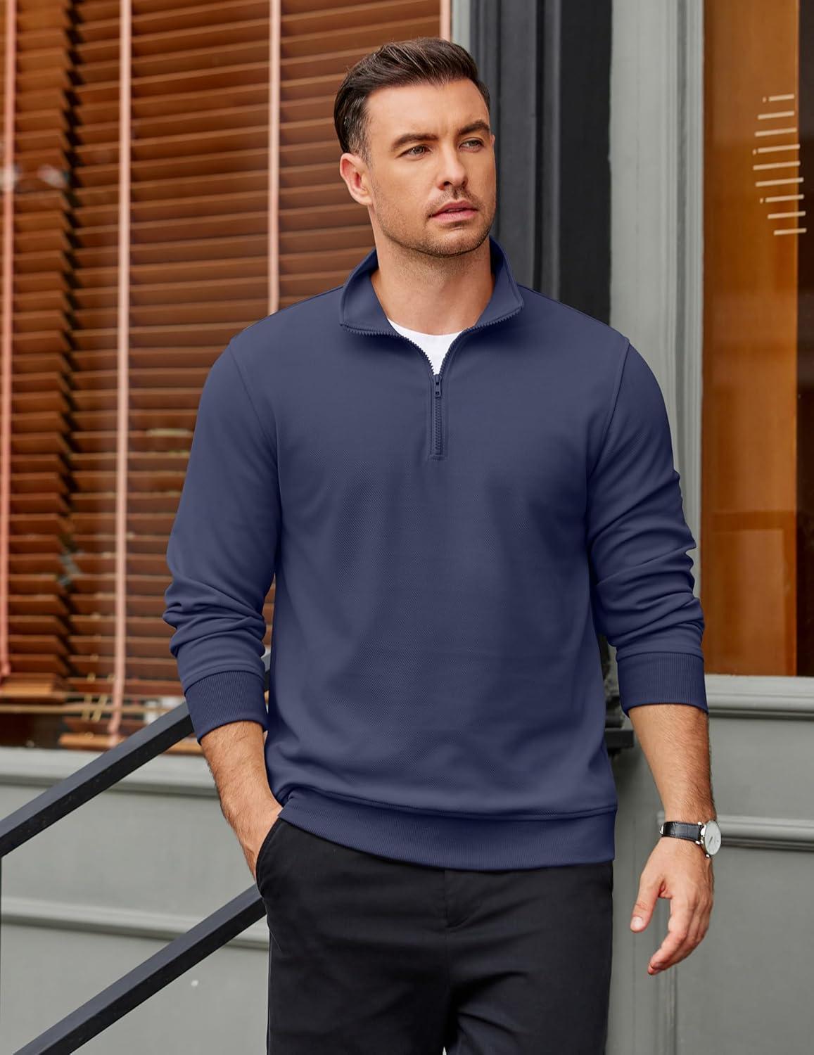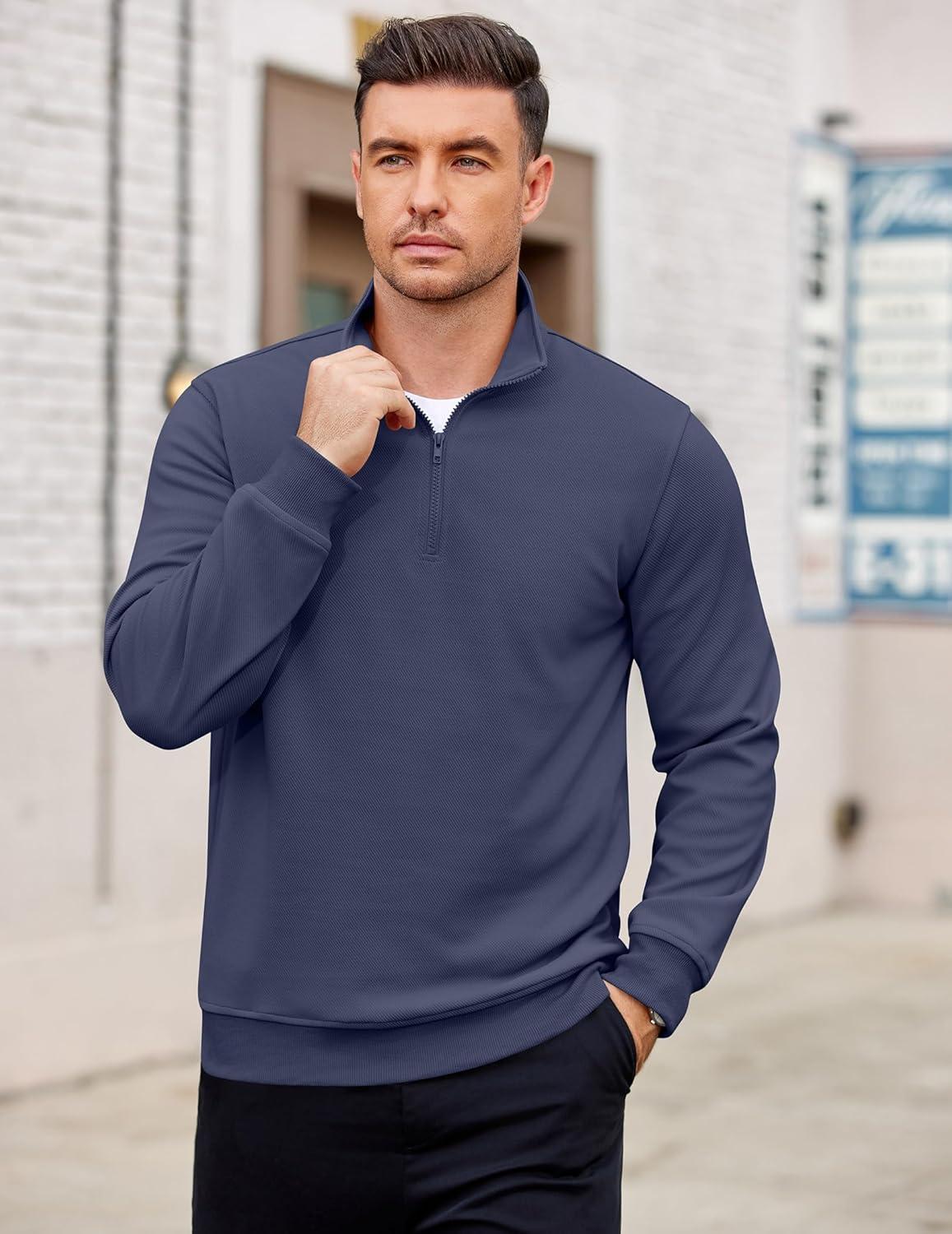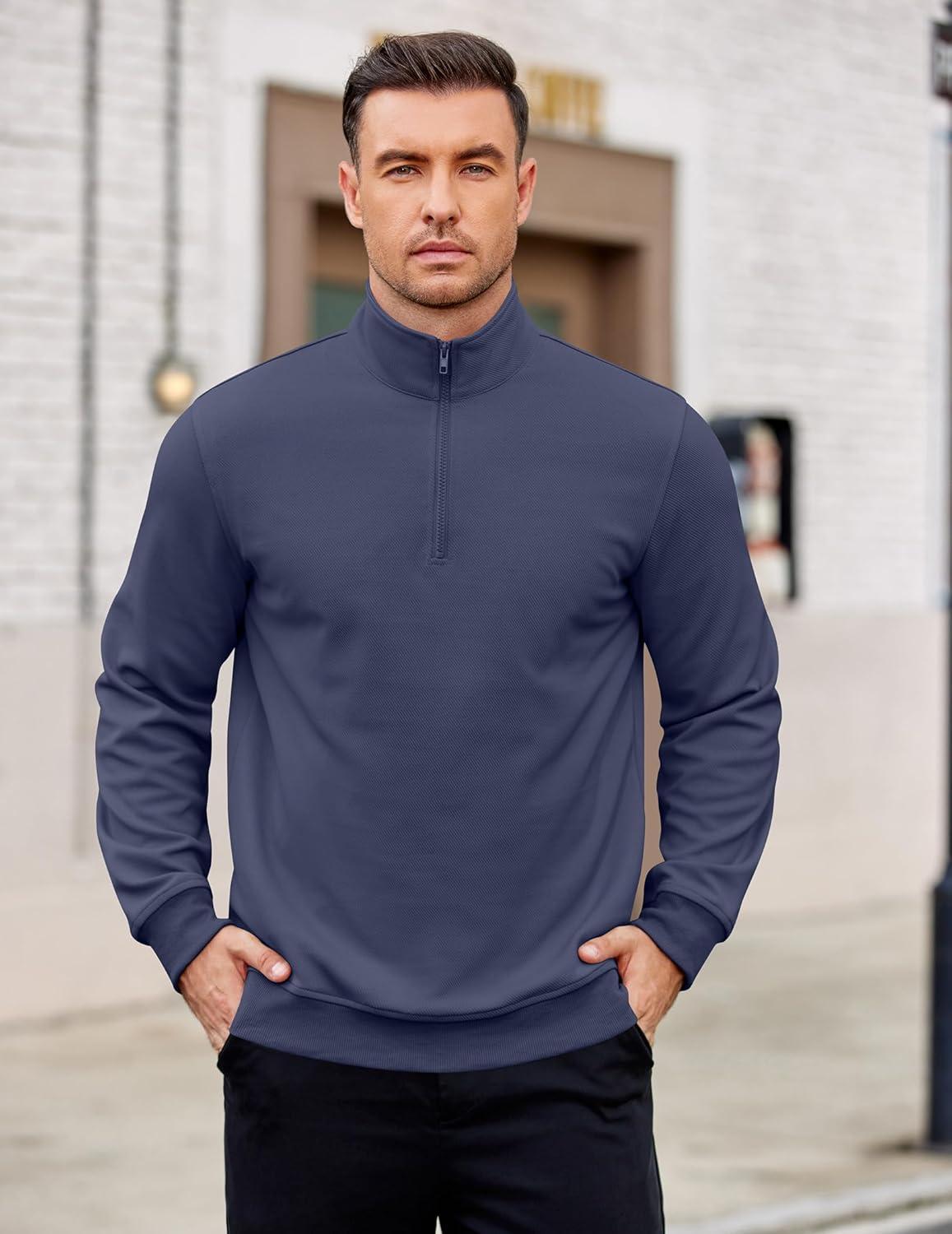 COOFANDY Men’s Quarter Zip Pullover Mock Neck Lightweight Sweatshirt Long Sleeve Polo Shirt Business Casual Pullover Top(Bluish Purple)
