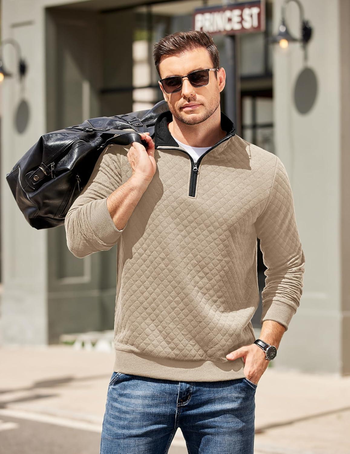 Don’t wait, get up to 50% off on COOFANDY Mens Quarter Zip Pullover Mock Neck Quilted Sweatshirt Casual Long Sleeve Polo Sweater(Khaki) during our end-of-season sale event.