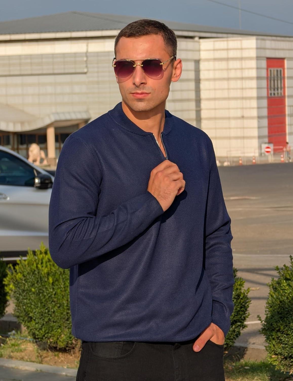 COOFANDY Mens Quarter Zip Pullover Slim Fit Knit Sweater Lightweight Mock Neck Casual Sweaters(Navy Blue)