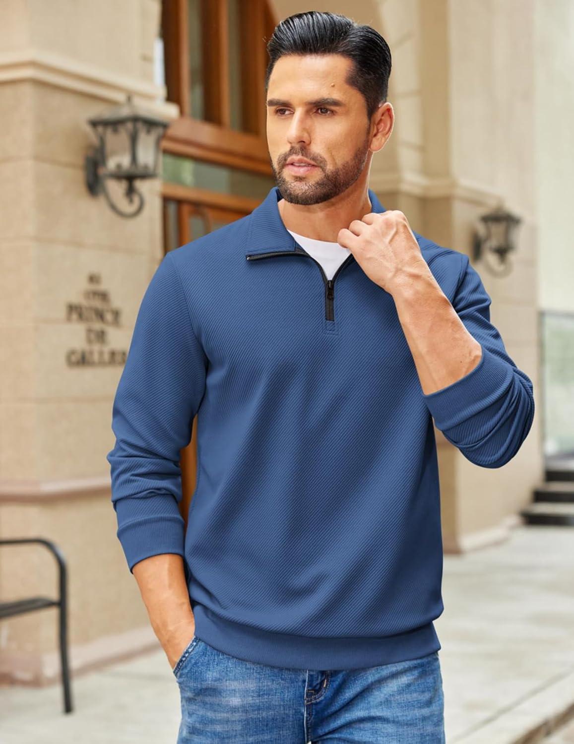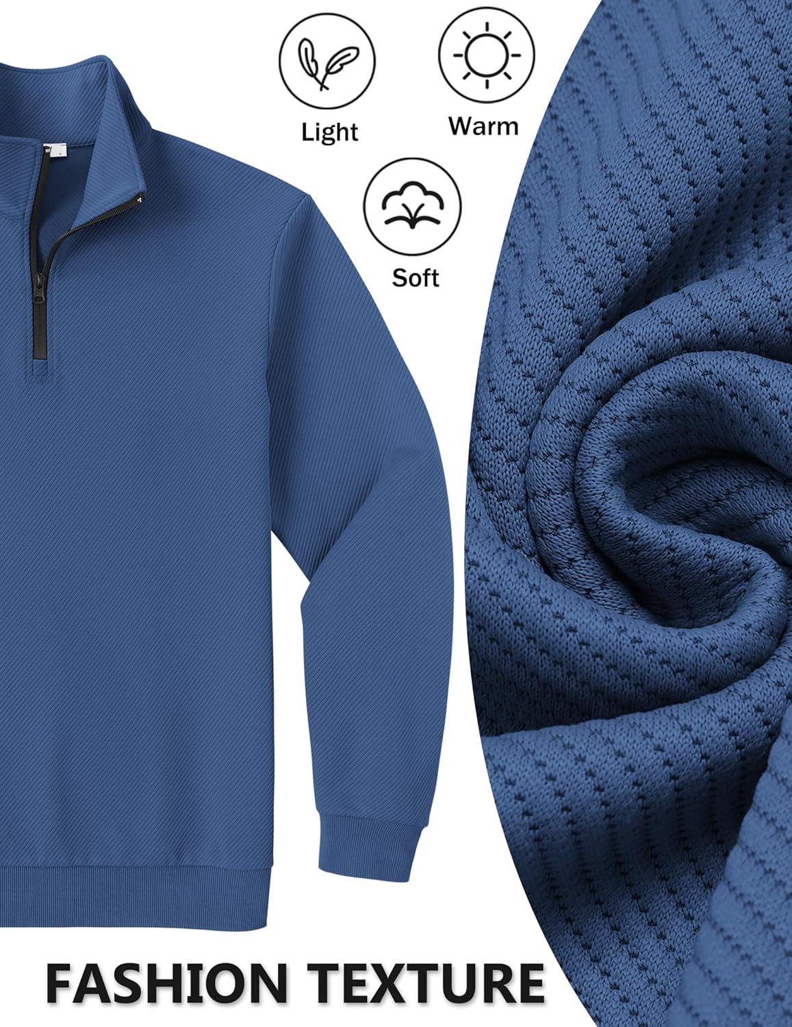 COOFANDY Mens Quarter Zip Pullover Sweatshirts Lightweight Long Sleeve Mock Neck Sweater Polo(Slate Blue)