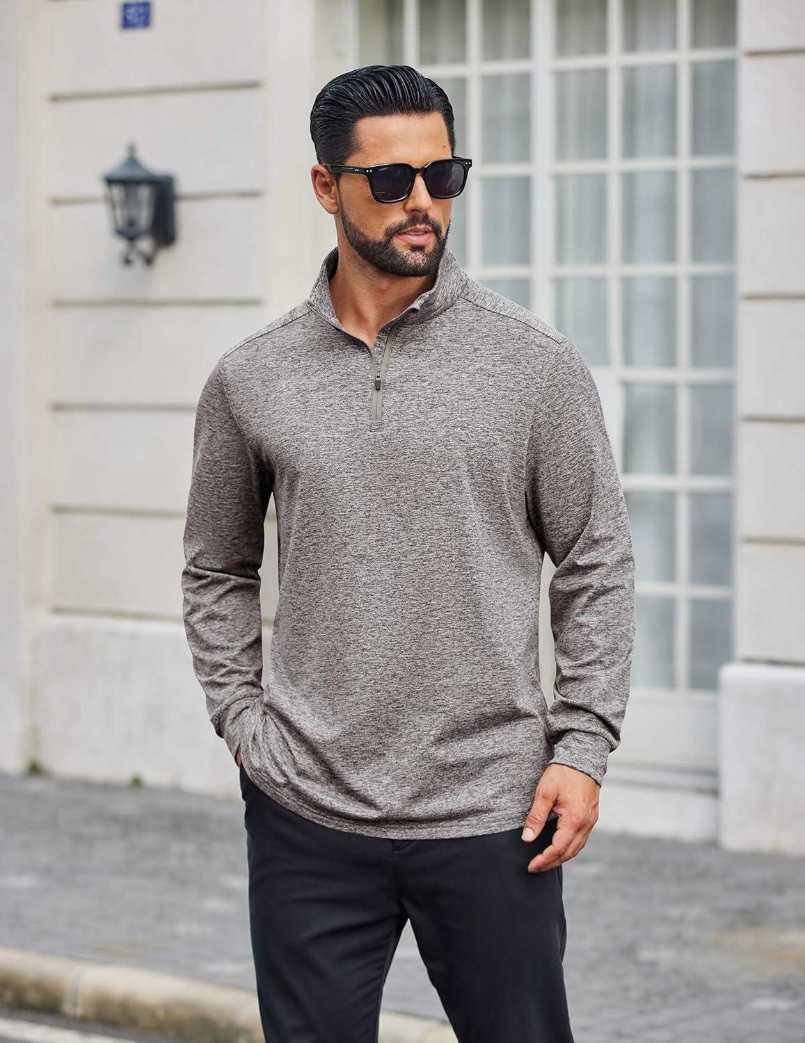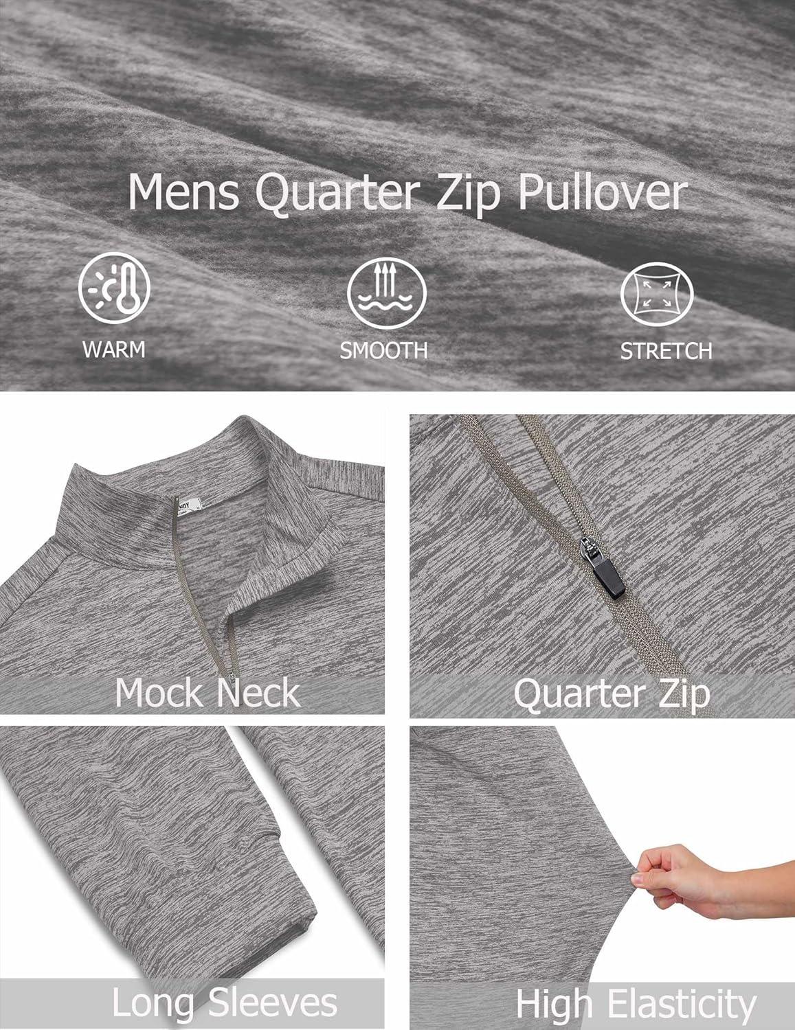 COOFANDY Men’s Quarter Zip Shirts Workout Fleece Lined Lightweight Long Sleeve Pullover Sweatshirts(Light Grey)