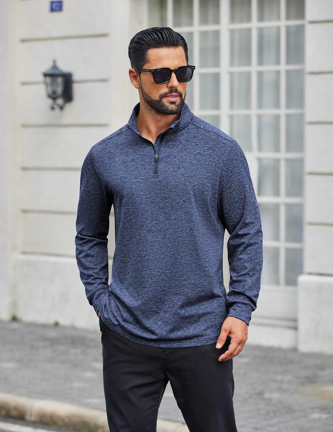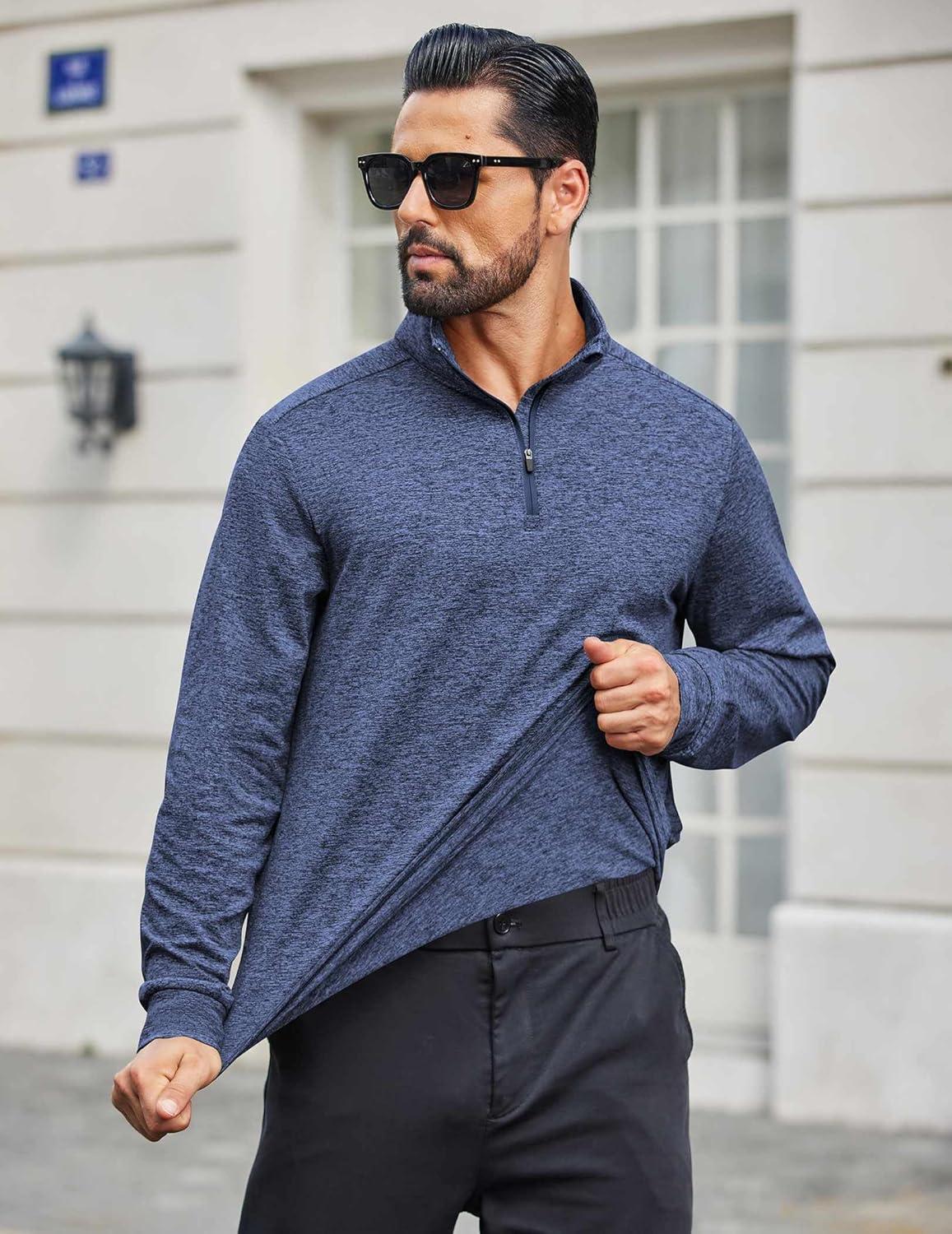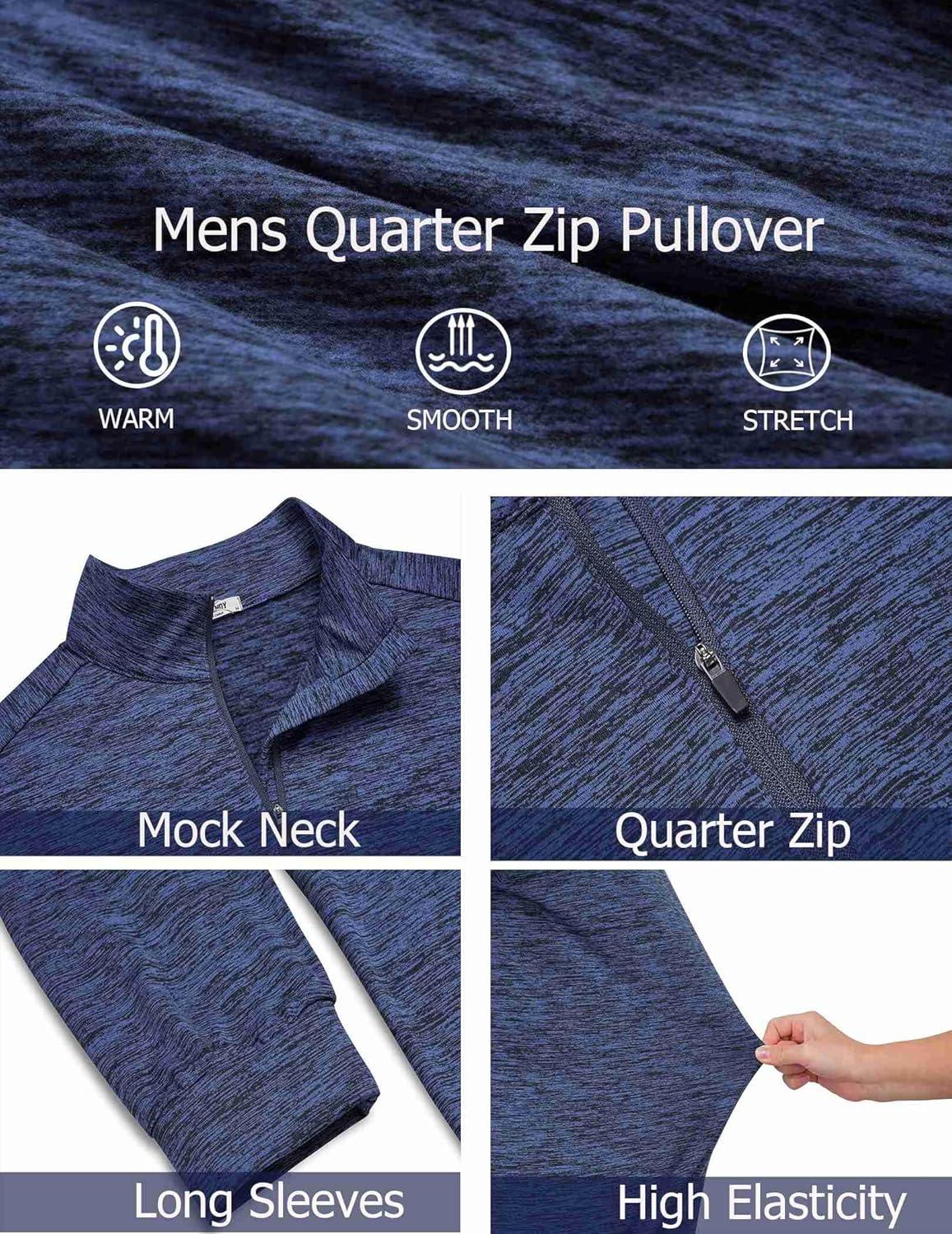 COOFANDY Men’s Quarter Zip Shirts Workout Fleece Lined Lightweight Long Sleeve Pullover Sweatshirts(Navy Blue)