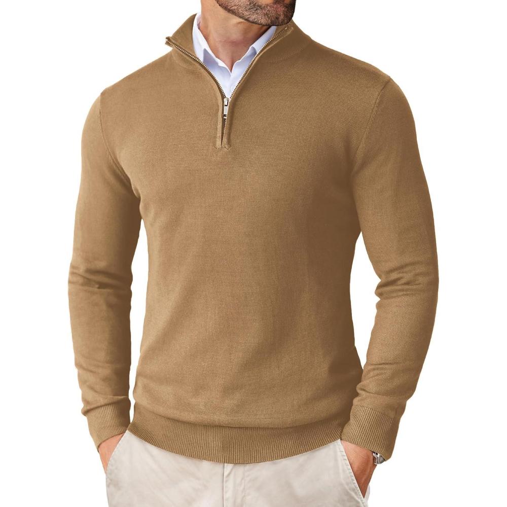 COOFANDY Men’s Quarter Zip Up Sweaters Slim Fit Lightweight Mock Neck Pullover Casual Polo Sweaters(Camel)