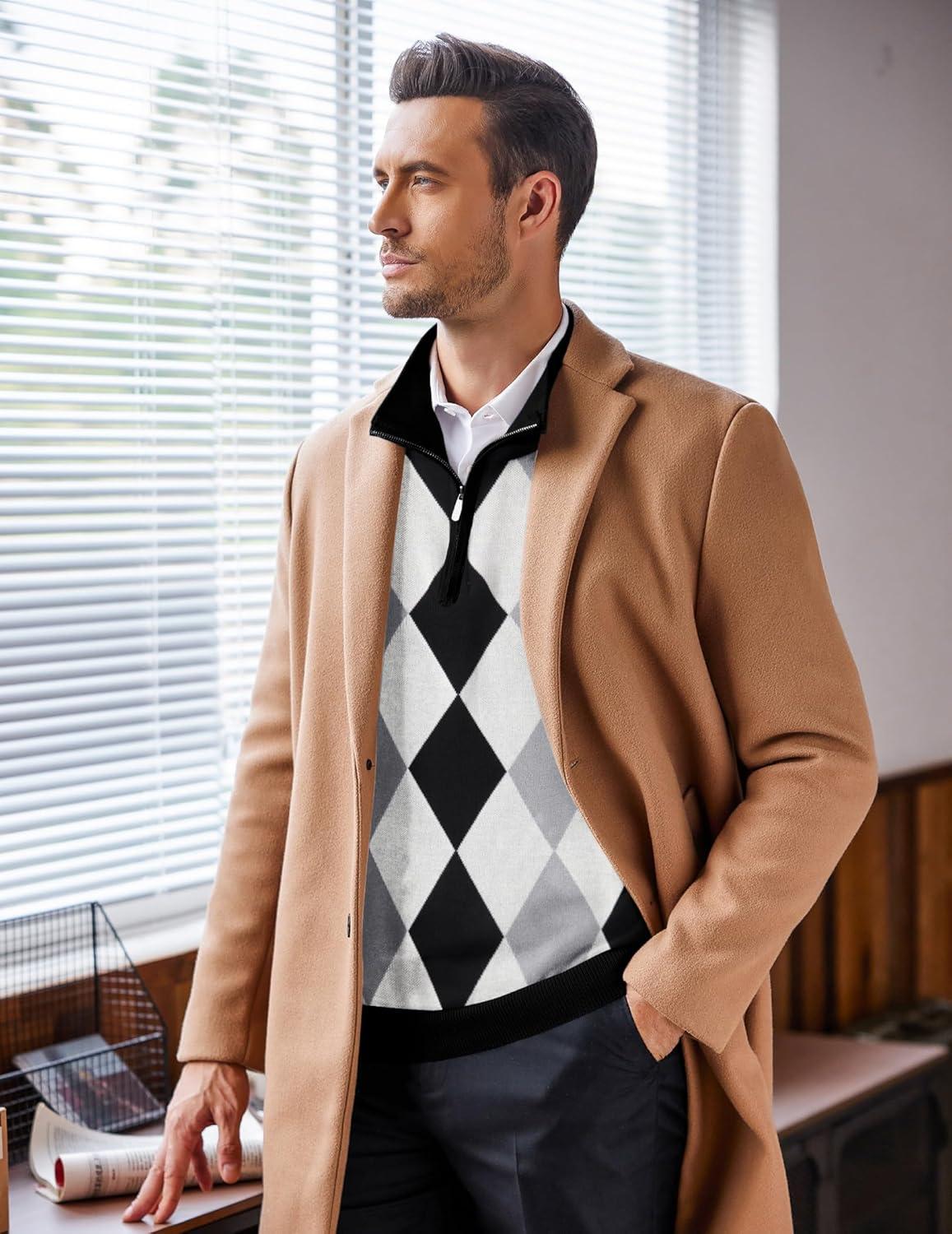 COOFANDY Men’s Quarter Zip Up Sweaters Slim Fit Lightweight Mock Neck Pullover Casual Polo Sweaters(Dark Heather Grey & Black Stripe)