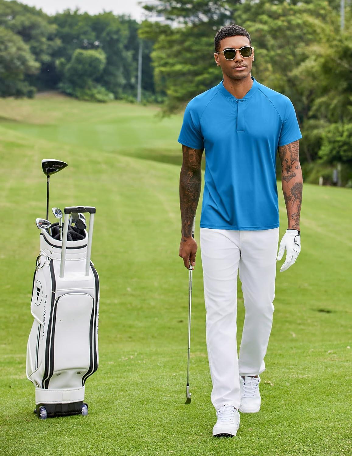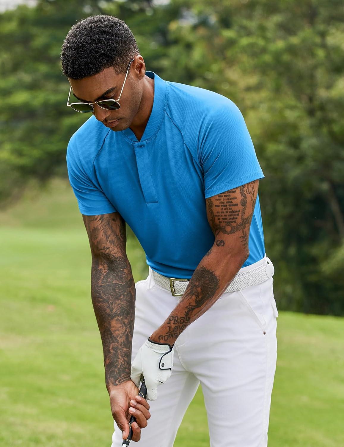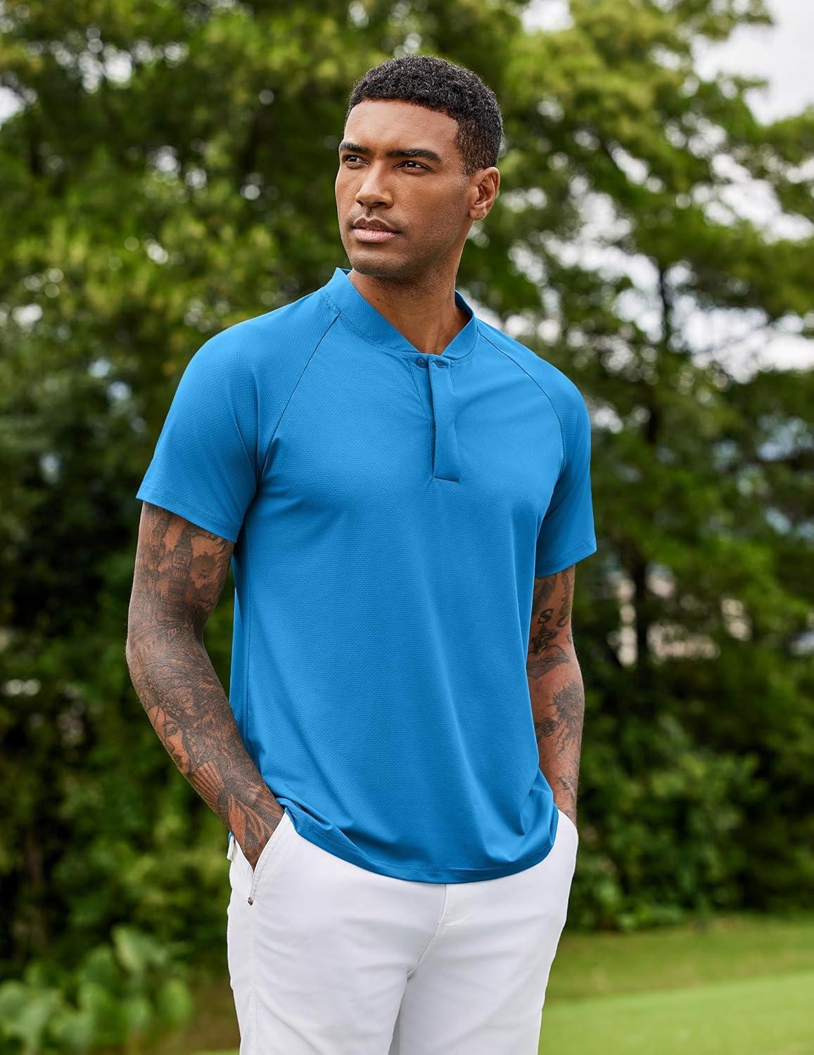COOFANDY Men’s Quick Dry Golf Polo Shirts Short Sleeve Henley Shirt Active Athletic Collarless Sports T Shirts(Blue1)