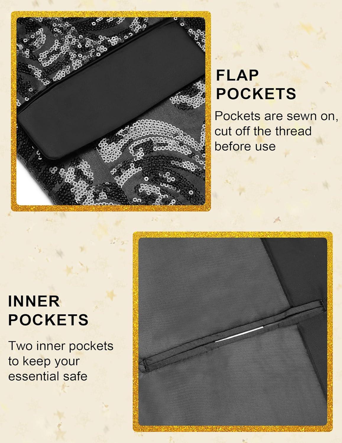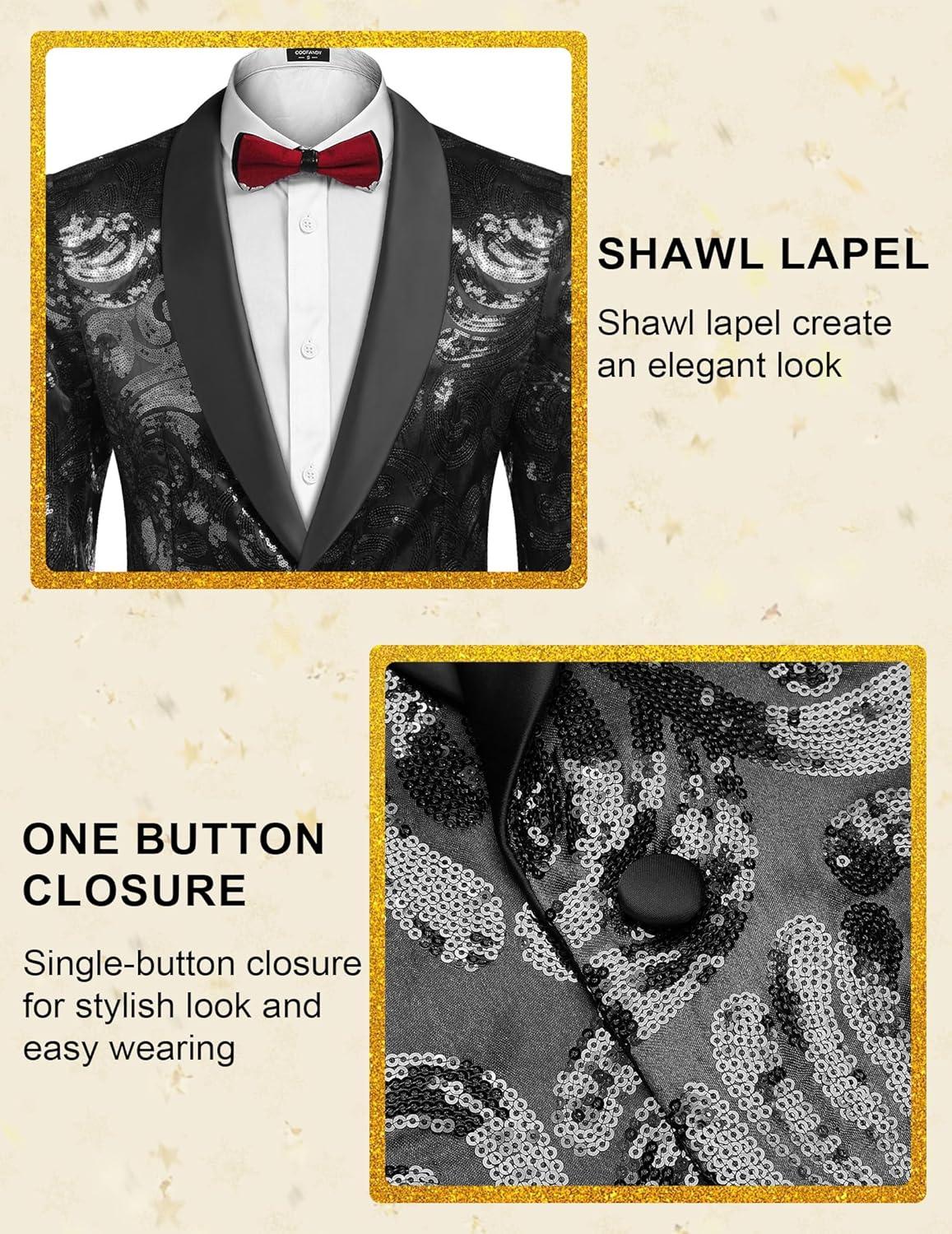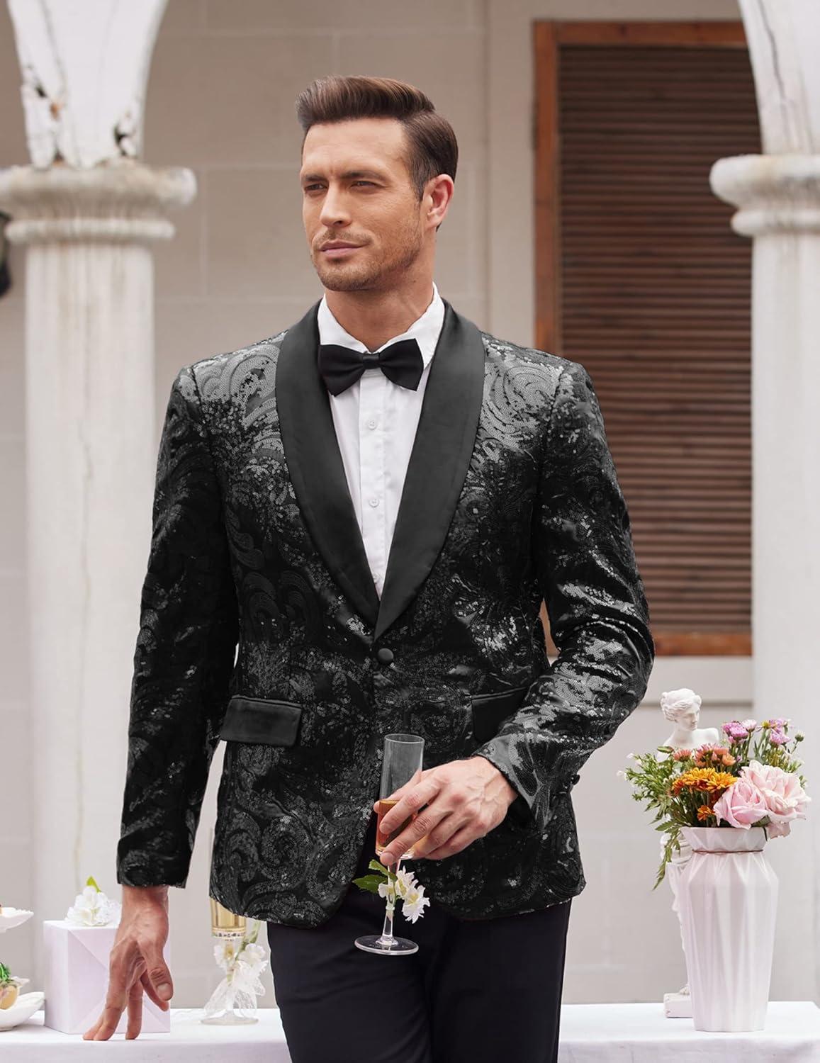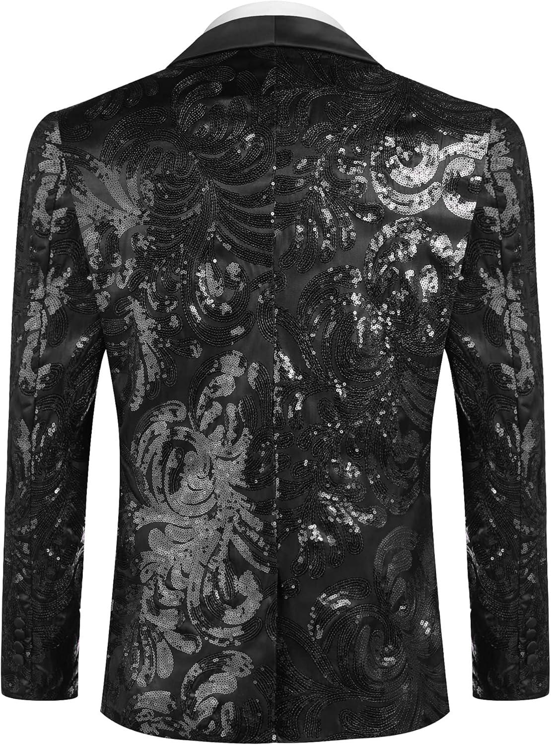 COOFANDY Men’s Sequin Blazer Sparkly Glitter Jacket Shiny Floral Suit Jacket Stylish Party Wedding Banquet Prom Tuxedo(Black)