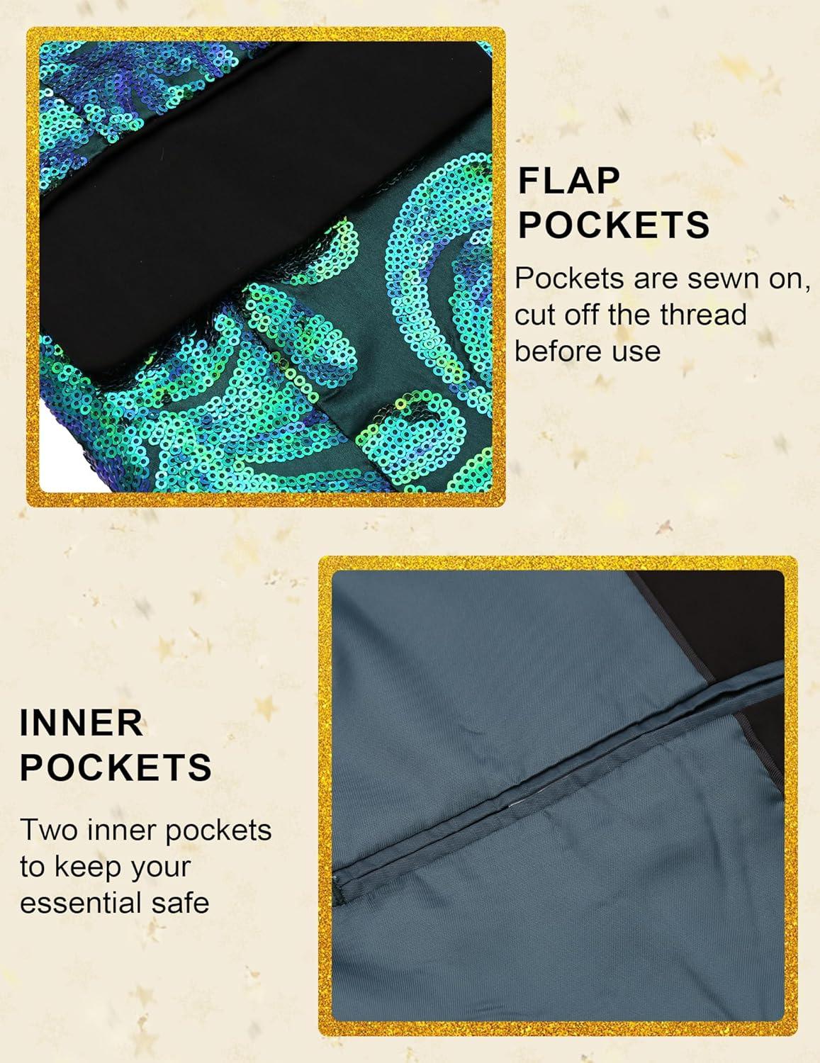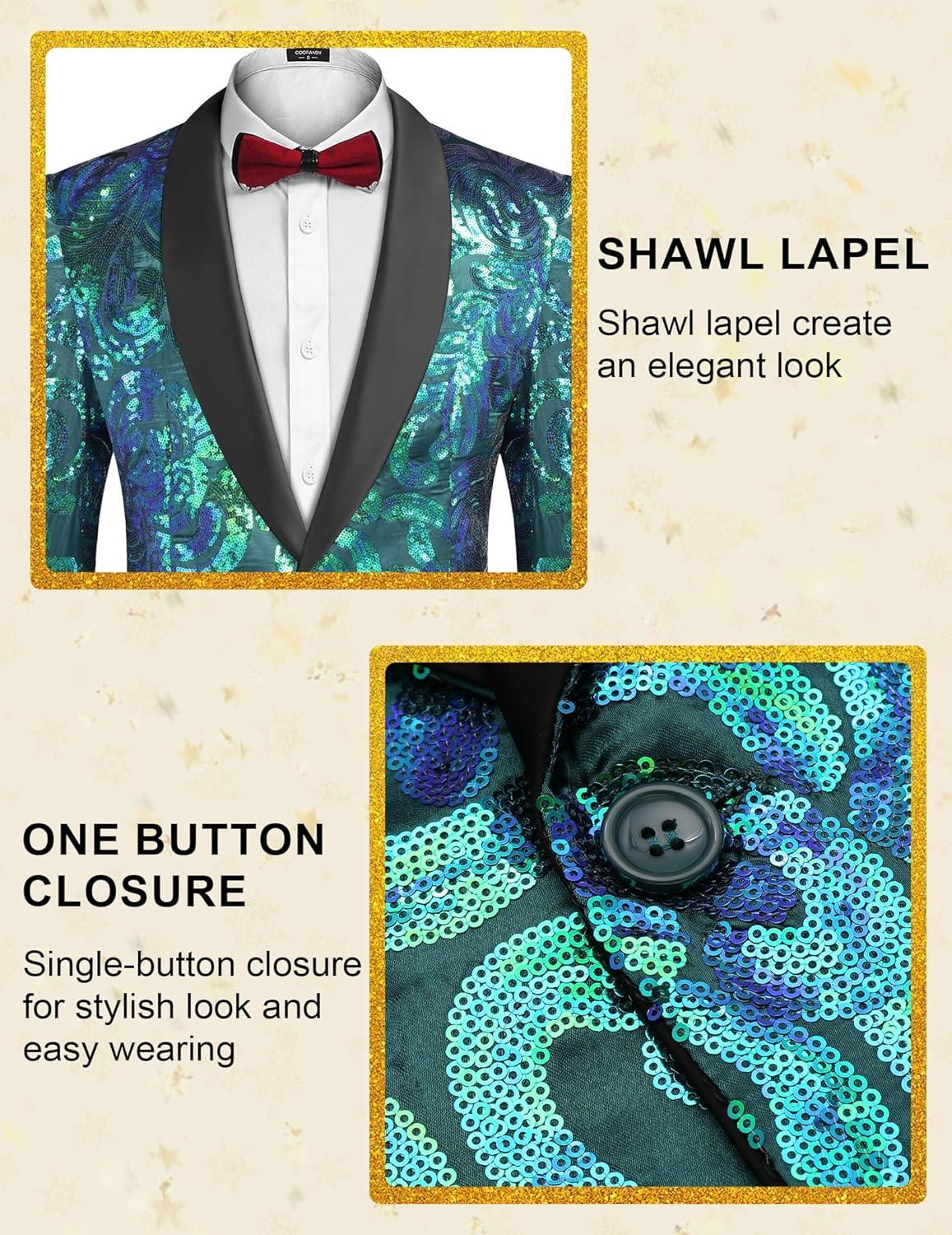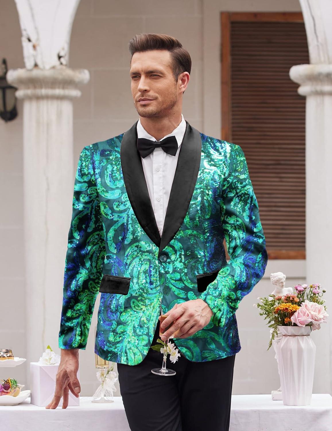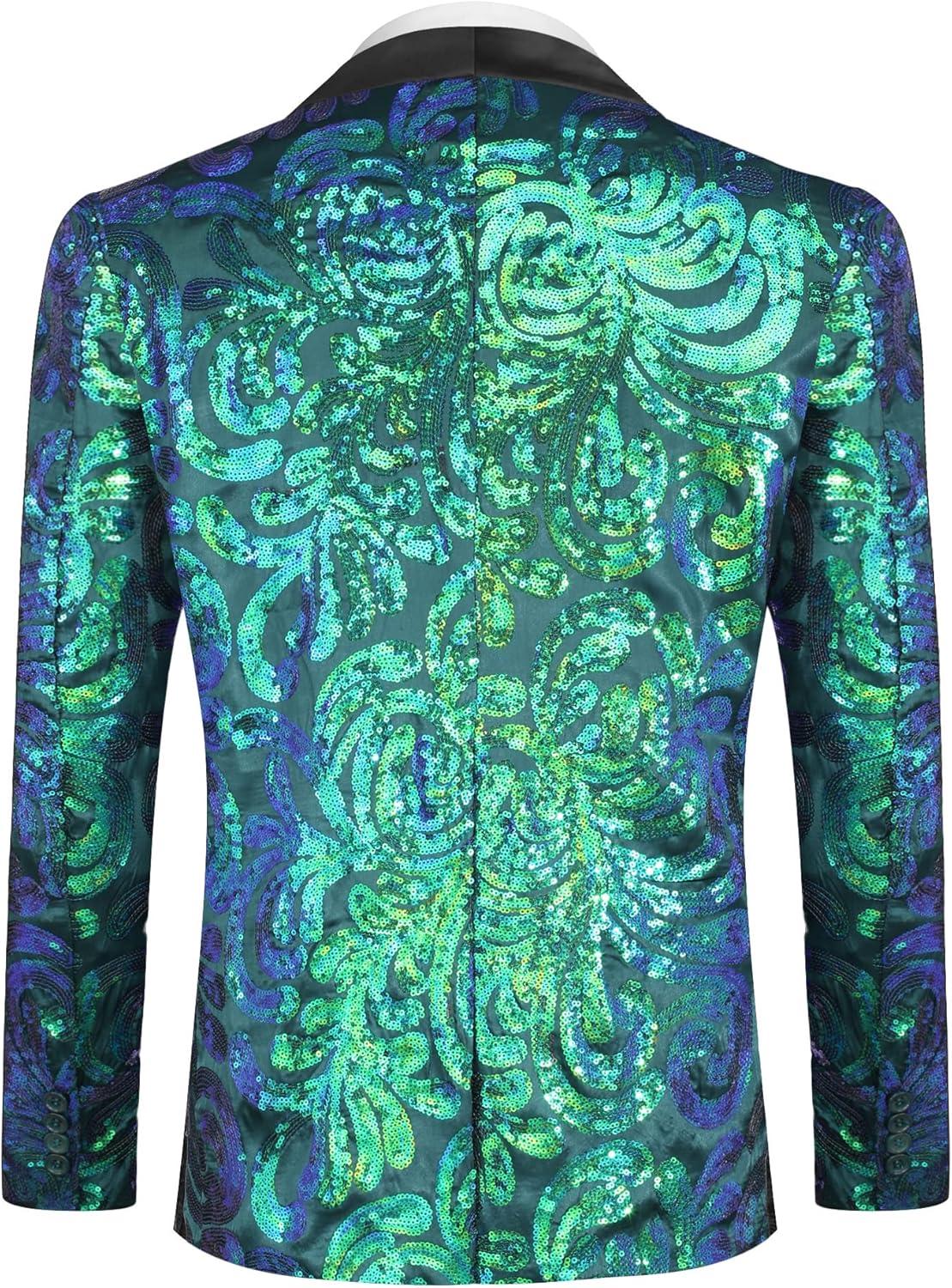 COOFANDY Men’s Sequin Blazer Sparkly Glitter Jacket Shiny Floral Suit Jacket Stylish Party Wedding Banquet Prom Tuxedo(Green)