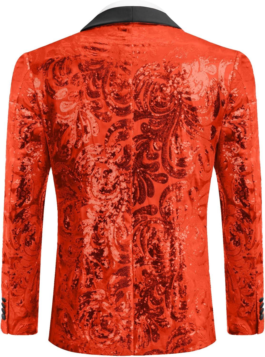 COOFANDY Men’s Sequin Blazer Sparkly Glitter Jacket Shiny Floral Suit Jacket Stylish Party Wedding Banquet Prom Tuxedo(Red)
