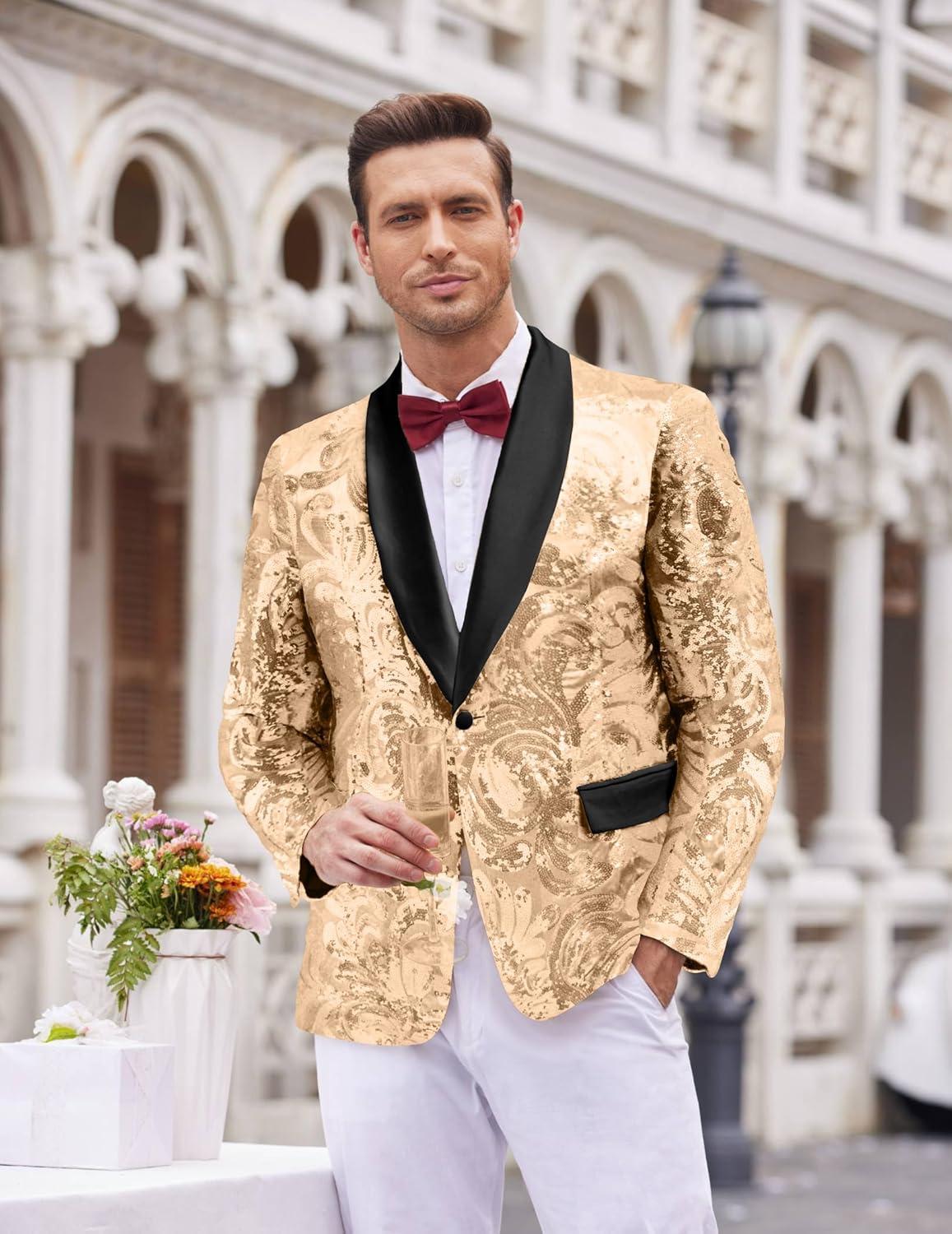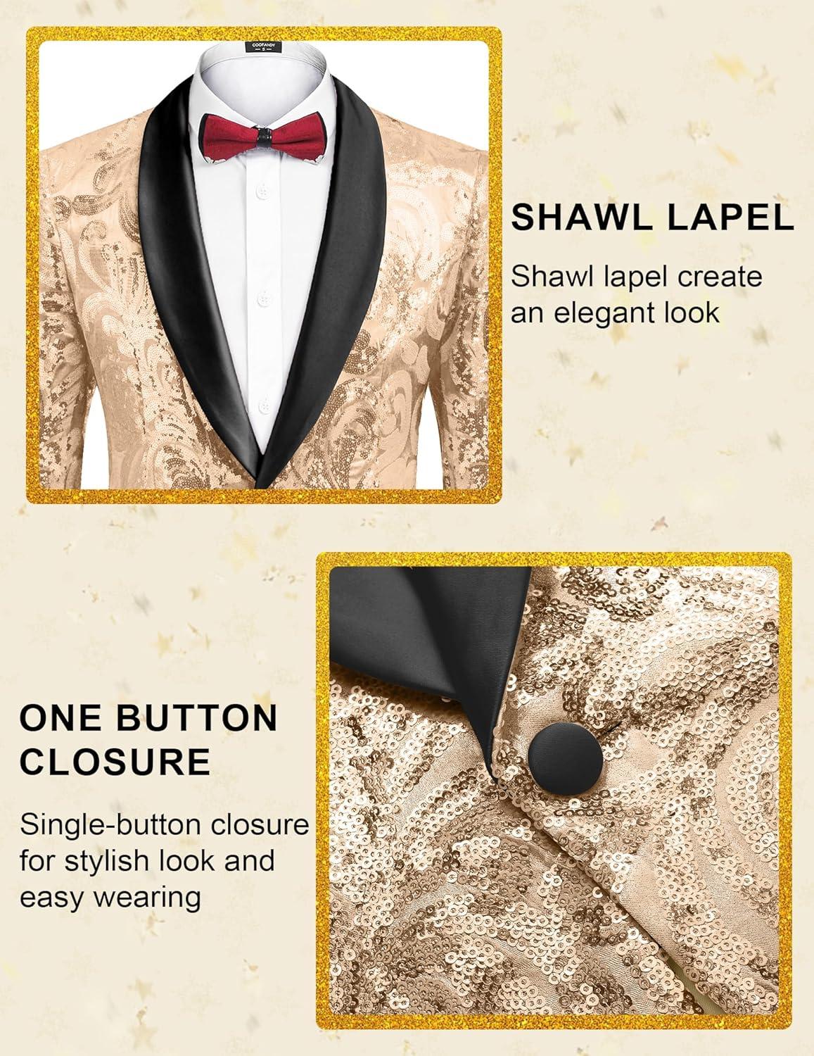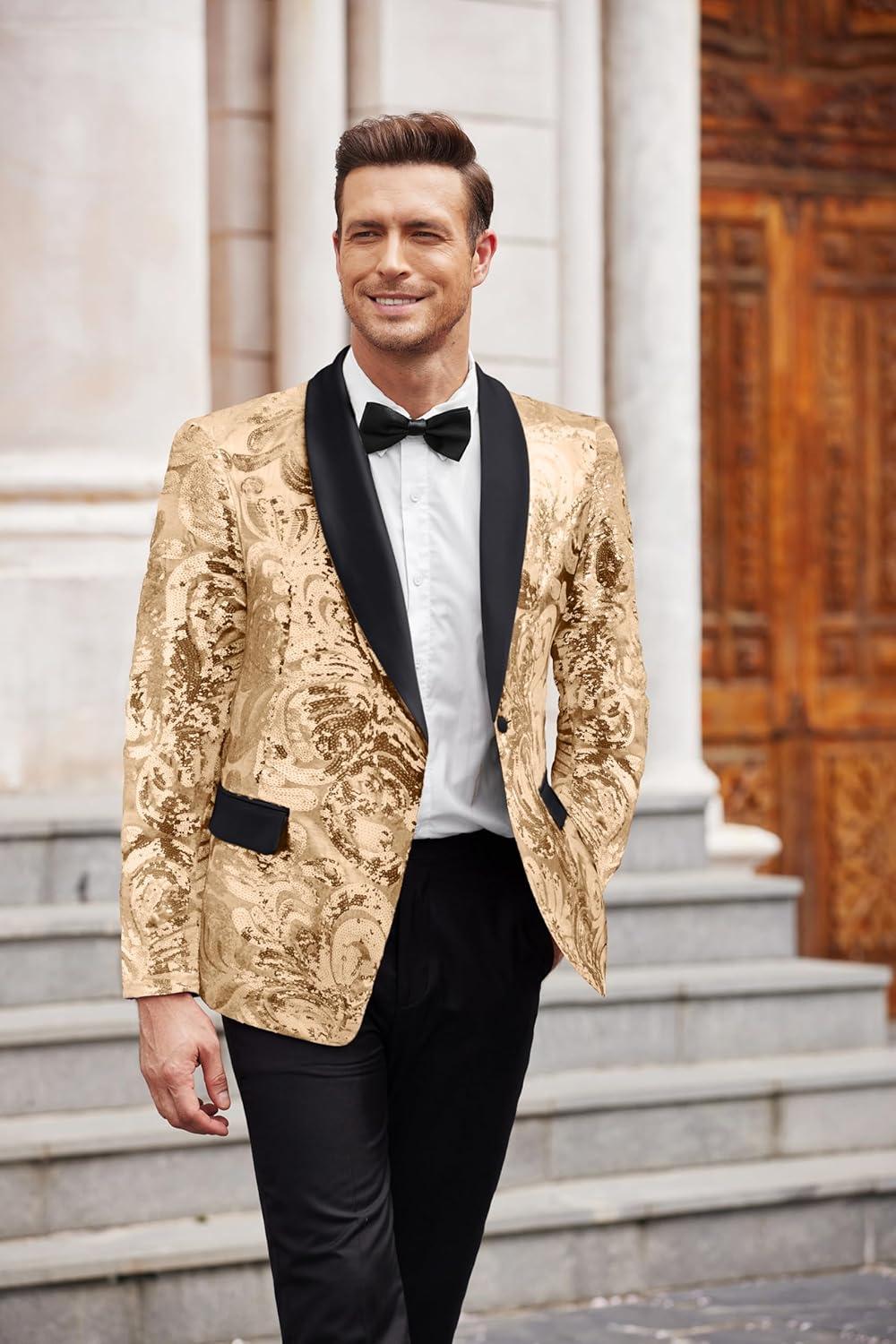 Get your hands on our newest COOFANDY Men’s Sequin Blazer Sparkly Glitter Jacket Shiny Floral Suit Jacket Stylish Party Wedding Banquet Prom Tuxedo(Rose Gold) and enjoy a limited-time discount offer.